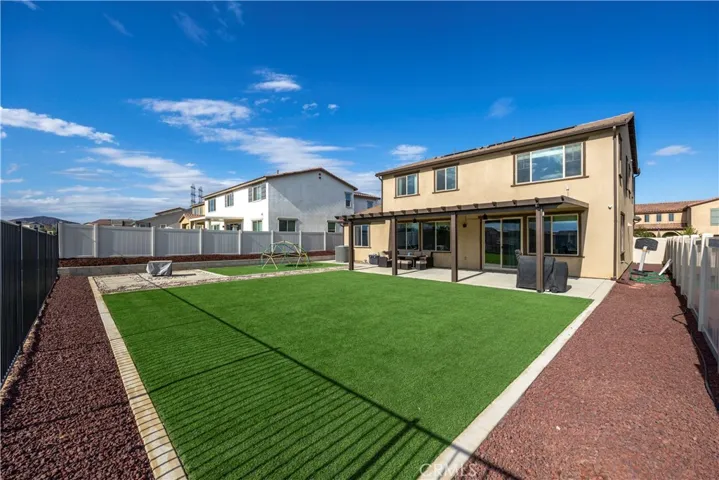 Welcome to 2061 Horizon Drive, a stunning 4 Bedroom, 2 and Three-Quarter Bathroom property located in the desirable Master-Planned Community of Atwell. Built in 2022, this home offers 2,844 sq. ft. of living space, privacy, breathtaking views and a peaceful river running along the back that you’ll love coming home too! As you step inside, you immediately notice the tall 9-Foot ceilings and open-concept floorplan, very spacious and modern throughout. The heart of the home is the chef’s kitchen, complete with a large kitchen island, soft-close cabinetry, and abundance of storage. The kitchen flows seamlessly into the expansive living room, perfect for everyday living and entertaining with family and friends. As you step outdoors, your backyard retreat awaits you! This beautifully designed, low maintenance backyard features artificial turf, a raised garden bed, room for a play area, a large dura-cool alumawood patio cover with ceiling fans, a cozy fire pit, and the peaceful sounds of water flowing through a man-made river that runs along the backside of the home, through the center of the Atwell community. It’s the perfect setting to unwind or host family and friends.