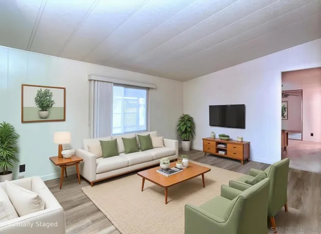 Discover the ultimate coastal living experience in this stunning home located in the highly sought-after Palomar Estates West. This property boasts an expansive living room and a modern kitchen featuring exquisite quartz countertops, double-pane windows, and sliding doors. brand-new luxury vinyl plank flooring. With a newer roof and a well-constructed retaining wall. The inviting California patio room is perfect for relaxation or entertaining guests. With recent re-piping and a new HVAC system. Discover the ultimate coastal living experience in this stunning home located in the highly sought-after Palomar Estates West. This property boasts an expansive living room and a modern kitchen featuring exquisite quartz countertops, double-pane windows, and sliding doors. brand-new luxury vinyl plank flooring. With a newer roof and a well-constructed retaining wall. The inviting California patio room is perfect for relaxation or entertaining guests. With recent re-piping and a new HVAC system. Palomar Estates West is a five-star, rent-controlled senior community (55+/35+) featuring numerous activities and amenities, including a beautiful clubhouse, pool, spa, gym, putting green, pickleball courts, and tennis courts. Additionally, this home is just minutes away from Lake San Marcos dining and golf, as well as local beaches, shopping, and restaurants in Carlsbad.