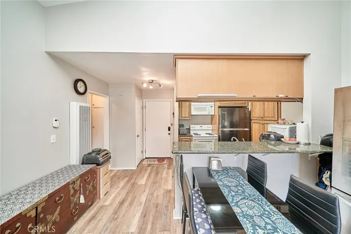 Step into your own private sanctuary in this quiet and private top-floor end unit, tucked away in one of the most desirable corners of the gated Mariner’s Park Village community. With no neighbors above or below, this 1-bedroom, 1-bath condo offers the rare combination of serenity, security, and style. You’re welcomed by a sense of openness by a high vaulted ceiling. The spacious living area leads to a charming private balcony, perfect for morning coffee, reading, or simply relaxing in your own outdoor escape. The balcony is also accessible from the bedroom, making it an extension of your personal haven. The kitchen is well-sized and functional. Additional features include gated community, laundry room right downstairs, location is shielded from freeway noise, ocean breeze, assigned carport parking space with outdoor storage. Community amenities are Beautifully maintained park-like grounds,2 swimming pools, clubhouse, playground. HOA covers hot and cold water, too. Invest in comfort, style, and a place to call your own.