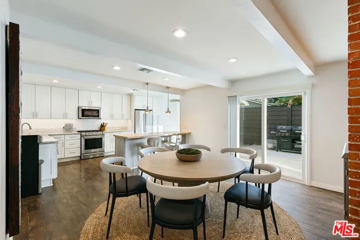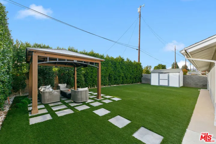 Tucked behind secure gates, this sun-filled single-story residence offers over 1,700 square feet of thoughtfully reimagined living space with three bedrooms, two bathrooms, and a seamless open-concept floor plan designed for modern living. Every detail has been elevated with high-end upgrades throughout. The chef’s kitchen is a true showpiece, featuring new stainless-steel appliances, a rare wood-block countertop with a farmhouse sink, sleek engineered marble countertops, a custom tile backsplash, and Grohe fixtures. The heart of the home centers around a dramatic, 360-degree architectural fireplace, a stunning focal point visible from the kitchen, dining area, and expansive family room creating the perfect ambiance for entertaining or cozy nights in. Both bathrooms showcase exceptional craftsmanship with custom tilework, Pental quartz (Carrara marble-style) countertops, and full-size vanities. The primary suite offers a spa-like retreat with dual sinks, a large soaking tub, and direct access to the backyard creating a seamless indoor-outdoor connection ideal for morning coffee or evening relaxation. A built-in linen station with quartz counters anchors the bedroom wing, while the exterior impresses with a beautifully landscaped front lawn enclosed by a wrought-iron fence for privacy and security. The private backyard provides generous space to create a resort-style pool and spa, or to add a custom ADU or guest house (subject to city approval) ideal for additional income, guests, or extended family stays. A large Tuff Shed provides extra storage, while tall hedges create a private, resort-like setting. Perfectly situated close to the well-regarded CSUN campus and within minutes of Costco, Target, Northridge Fashion Center, and an array of dining options, this home captures the essence of the sought-after California lifestyle. Please note that certain images have been virtually staged for illustrative purposes only to simply provide inspiration and demonstrate potential use of the space.