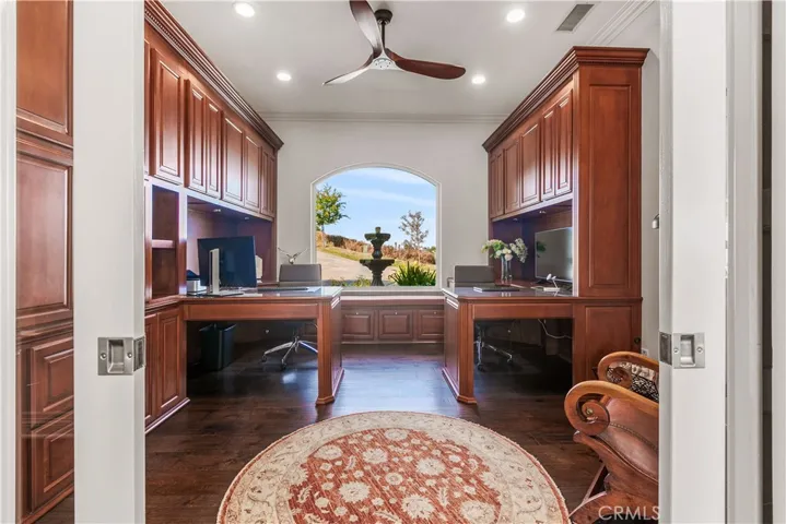 Breathtaking Panoramic Picturesque Views of Surrounding Hills and Valleys, Tranquility and Privacy. Elegant and Timeless De Luz Residence Impeccably Maintained and Beautifully Curated. Located Just Minutes from Historic Old Town Temecula (EST. 1859) and Temecula Wine Country. Stunning Drive Through Del Luz Roads with Majestic Oak Trees and Orchards, Adding Charm and Almost Magical Sense. On a Clear Day You Can Catch a Glimpse of Ocean View before heading Down Large Private Circular Driveway, and if you look left, during the Winter and Spring You Might see the Snow of San Bernardino National Forest. Impressive and Inviting Curb Appeal. Welcoming Front Porch, Lead Glass Double Door and Cathedral Ceiling Entry. Living Room with Curved Wall Enhancing Stunning Views. Gleaming Oil Rubbed Oak Flooring Throughout, Open Floor Plan Flooded with Natural Light. Formal Dining Room Adjacent to Gourmet Kitchen that Includes Oversized Center Island, Butler’s Pantry, Wine Cellar, Walk-In Pantry and Spacious Breakfast Nook. Kitchen Opens to Incredible Family Room with Remarkable Beams, Fireplace and Two Sets of French Doors Leading to Covered Patio. The Primary Suite Includes Fireplace, Two Oversized Walk-In Closets and Large Retreat/Library that can be easily turned into a Fifth Bedroom, Nursery or Gym. Adjacent to the Primary Suite is also Spacious Office with Two Built-In Desks. The Left Wing of this Extraordinary Home Comprises Three En-Suite Bedrooms, All Offering Truly Magnificent Views. Resort Style Backyard Includes Several Patios, Swimming Pool, Spa, BBQ Island, Horseshoe Pit, Mega Chess Board and So Much More! Fruit Tree Orchard Includes Several Citrus Trees, Avocado and Passion Fruit Tree and 15 Crepe Myrtle Trees are Planted Along the Private Driveway. Oversized Three Car Garage Includes Epoxy Flooring, Electric Car Charger and Ample Storage. Long List of Amenities and Recent Upgrades Available Upon Request. Truly Remarkable Property; Four Bedrooms, Retreat, Office, Four Fireplaces and Six Bathrooms Plus an Outdoor Shower. Low Property Tax Rate.