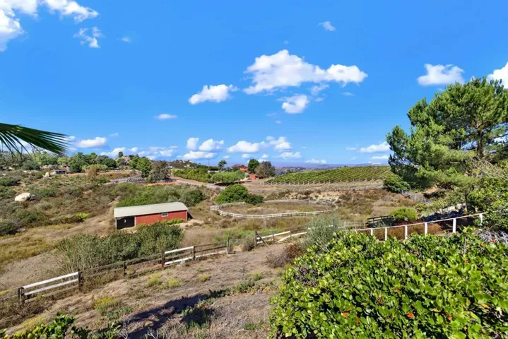 Welcome to Hidden Meadows and your little slice of heaven. Hidden Meadows is a community tucked away into the quiet hills, yet a short distance to the freeway. It boasts wineries, two delis, its own fire department, a public golf course and 1 mile from Daley Ranch Preserve with miles of hiking, biking and horseback riding trails. This single story sanctuary sits on a 4.59 acre horse property. Beautiful views! Brand new HVAC system. HUGE workshop with a separate driveway entry. Situated on the upper portion of the property this wonderful home looks out onto mountain and vineyard views and the horse pasture and barn down below. Large kitchen and second living room area with fireplace and pot belly stove. Expansive covered patio perfect for all types of gatherings rain or shine. New carpet in living room and guest bedroom. Half bath and small room attached to garage. With county approval and proper permits you could possibly expand bathroom and turn this into an ADU. Welcome Home!