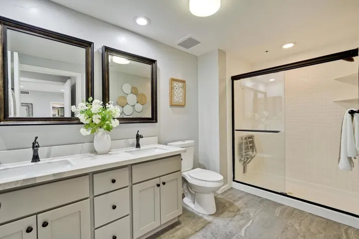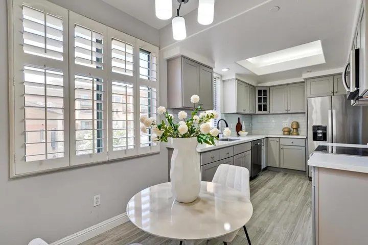 One of the most desirable & unique city homes in downtown San Jose! This spacious 1,493 sq. ft. end-unit condo offers modern comfort and privacy within a peaceful, gated community, an east-west orientation home is filled with natural light throughout the day. The rare end-unit layout provides quiet & privacy.Two master suites with walk-in- closets & full bathrooms.The big living room with dramatic to-ceiling windows for view of the mountain.The windows with customized shutters, bringing in warmth and brightness.Kitchen floor installed a newly SPC floor. A private balcony, two parking spaces close to the elevator. A separate locked storage unit.The building itself is also packed with perks like a gym, saunas, hot tub, pool, lockbox for delivered packages, community room with bar seating and areas for gathering, onsite management services.The location is unbeatable steps from San Jose State University, the MLK Library, within walking distance to SAP Center, San Pedro Square, the SoFA Arts District. Experience a vibrant downtown lifestyle with diverse dining,coffee shops, theaters, nightlife all just outside your door. Commuting is effortless with easy access to Light Rail,Highways,San Jose International Airport.Seller is willing to pay 6 month HOA payment at closing.Don’t miss it.