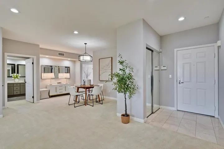 One of the most desirable & unique city homes in downtown San Jose! This spacious 1,493 sq. ft. end-unit condo offers modern comfort and privacy within a peaceful, gated community, an east-west orientation home is filled with natural light throughout the day. The rare end-unit layout provides quiet & privacy.Two master suites with walk-in- closets & full bathrooms.The big living room with dramatic to-ceiling windows for view of the mountain.The windows with customized shutters, bringing in warmth and brightness.Kitchen floor installed a newly SPC floor. A private balcony, two parking spaces close to the elevator. A separate locked storage unit.The building itself is also packed with perks like a gym, saunas, hot tub, pool, lockbox for delivered packages, community room with bar seating and areas for gathering, onsite management services.The location is unbeatable steps from San Jose State University, the MLK Library, within walking distance to SAP Center, San Pedro Square, the SoFA Arts District. Experience a vibrant downtown lifestyle with diverse dining,coffee shops, theaters, nightlife all just outside your door. Commuting is effortless with easy access to Light Rail,Highways,San Jose International Airport.Don’t miss out on a chance to live the ultimate urban life in San Jose!