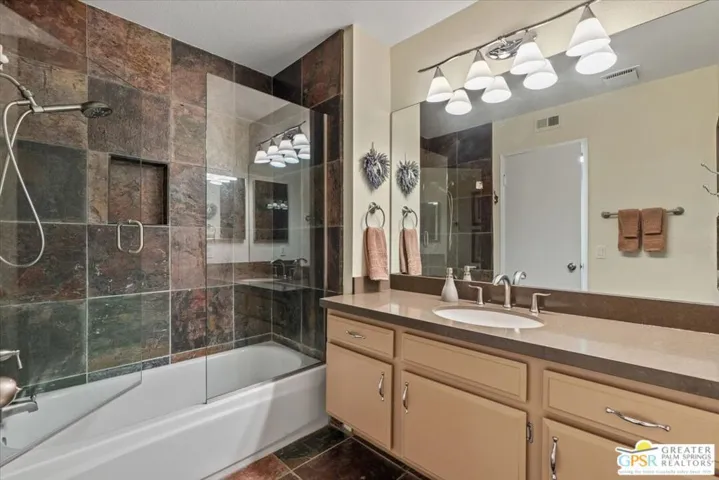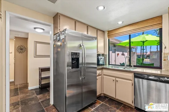 Welcome to this fully furnished 2-bedroom, 2-bathroom condo in the sought-after Sunrise Racquet Club. Located in the heart of Palm Springs, this home offers stunning mountain views, two private patios, and easy access to downtown Palm Springs and the PSP airport. The condo has been beautifully updated with stylish finishes, including slate floors and stainless steel appliances, and is being offered turnkey furnished. Enjoy resort-style amenities, including six pools, six spas, tennis courts, pickleball courts, a clubhouse, and more. A private garage and in-unit laundry add to the convenience of this home. This condo is a tennis lover’s dream, just steps away from racquet courts, It’s move-in ready just bring your racquet and toothbrush!
