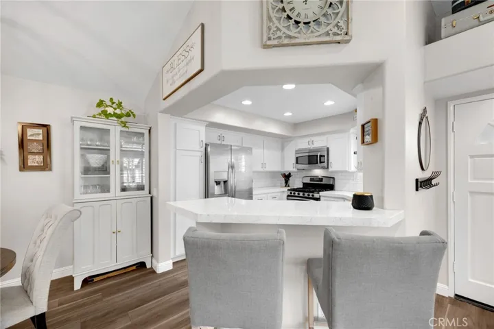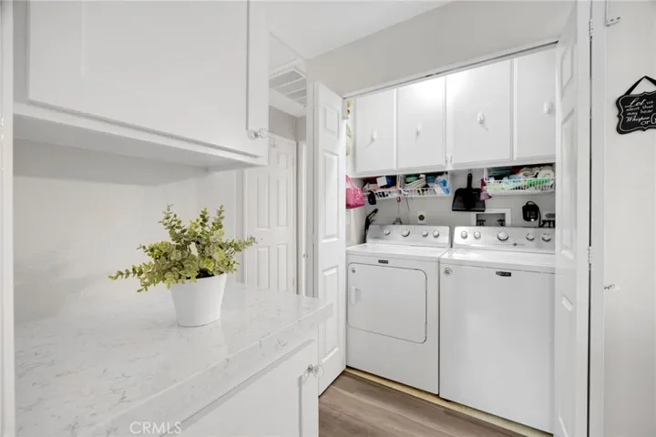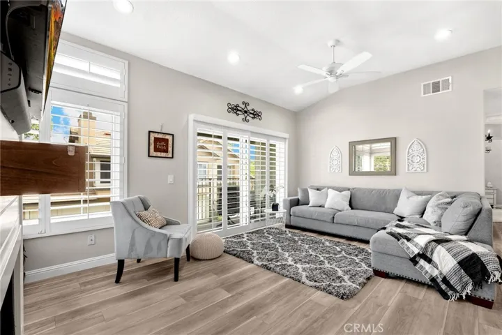 Beautifully Updated Condo in Desirable Anaheim Hills! Welcome to this tastefully updated single-story, two-bedroom, two-bath condo situated above its own two-car garage in the sought-after Laurelwood community of Anaheim Hills. Positioned toward the back of the neighborhood, this home offers a peaceful setting away from street noise while still close to shopping, dining, and entertainment. Step inside to discover a bright, open living space featuring laminate flooring throughout, newer carpet in the bedrooms, recessed lighting, and dual-pane windows for year-round comfort and efficiency. The inviting living room centers around a cozy fireplace accented with shiplap and a charming mantle, creating the perfect space to relax or entertain. This desirable floor plan—rarely available on the market—boasts two private balconies off the living room and has just been enhanced with a brand-new AC system. The renovated kitchen is a true showpiece, thoughtfully redesigned by the owner with custom storage solutions, crisp white cabinetry, quartz countertops, and a convenient breakfast bar. The spacious primary suite offers dual closets and a beautifully upgraded ensuite bathroom, while the secondary bedroom and bath provide ideal space for guests, family, or a home office. The attached two-car garage includes ample built-in storage cabinets, and the home is conveniently located within walking distance to one of the two sparkling community pools. With abundant guest parking and a prime Anaheim Hills location, this move-in-ready home perfectly blends modern upgrades, thoughtful design, and everyday comfort.