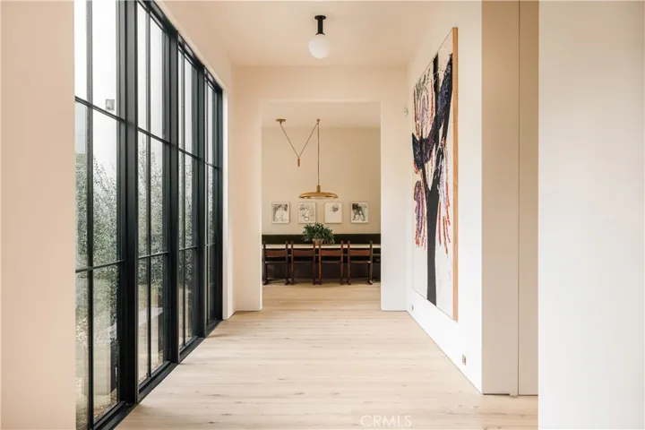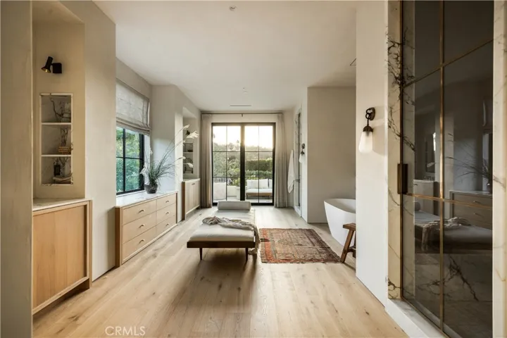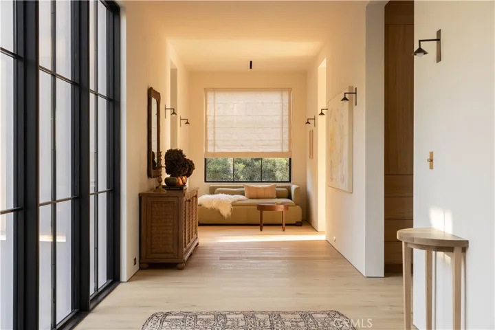 In the coveted Silver Triangle of Studio City, within the sought-after Carpenter School District, a rare architectural statement emerges—a home where craftsmanship and artistry merge into a singular vision of California living. Designed and built by Studio Rob Diaz, this newly constructed residence unfolds across 5,000 square feet on an 11,058 square foot lot, with 4 bedrooms, 4.5 baths, and an undeniable sense of presence. From the street, the orientation of shapes and textures hints at what lies within—an interplay of geometry and materiality executed with brilliance. A minimalist façade topped with Italian-imported terracotta roof tiles conceals an interior defined by warmth, restraint, and refinement. Inside, Belgian white oak floors and hand-finished Roman Clay walls soften the light that pours through soaring Euroline steel doors and floor-to-ceiling windows. Every surface is intentional, every line deliberate. Light itself is treated as art: Allied Maker pieces guide you through hallways, Roman & Williams illuminate the dining room and kitchen, Volker Haug accents the primary bedroom corridor, while the Apparatus Studio crowns the primary suite with sculptural fixtures above and in the spa-level bath. The chef’s kitchen is both centerpiece and sanctuary, anchored by Calacatta Paonazzo marble slabs, bespoke cabinetry, Spaces within hardware, Thermador appliances, a symphony of elegance and utility. The primary suite offers two private terraces, a spacious dressing room, and a bathroom where marble, dual showers, and a sculptural soaking tub invite ritual and repose. Additional amenities include a dedicated office, a wood-clad theater, Waterworks fixtures, integrated smart-home technology, Sonance in-wall speakers, EV charging, and solar panels. The exterior grounds mirror a private resort: a 50-foot black-bottom pool and spa stretch across cobblestone patios, while layered greenery and alfresco dining spaces deliver both seclusion and serenity. Perfectly positioned south of Ventura Boulevard, moments from Erewhon, The Shops at Sportsmen’s Lodge, Sugarfish, and the cafés of Tujunga Village, the home balances tranquility with accessibility. Outdoor lovers will appreciate Fryman Canyon nearby, while commuters benefit from swift access to the Westside, Hollywood, and Beverly Hills. The Hillslope estate is not just a home—it is a living composition of light, texture, and form that transforms everyday life into an experience of art.