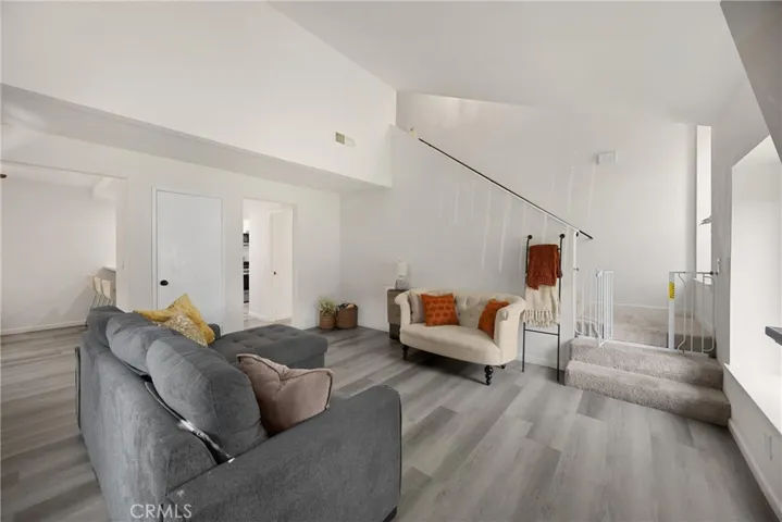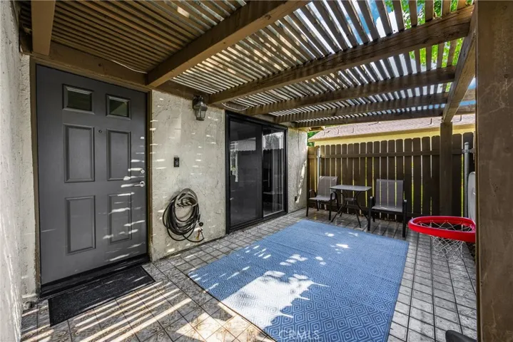 Welcome home to this stunning 3-bedroom, 2.5 bathroom condo that perfectly blends modern comfort style with everyday convenience. Enter the home through your private patio, ideal for relaxing or entertaining. Once you step inside you will be greeted by high ceilings and abundant natural light, and a thoughtfully designed floor plan that feels bright and inviting.The newly remodeled kitchen features soft-close cabinets, recessed lighting, that will include the stainless steel appliances, stove, dishwasher, and microwave for modern finishes. Enjoy new flooring, updated bathrooms with tile floors and new windows that have been installed throughout for energy efficiency and a contemporary feel. A new water heater adds peace of mind, while ample storage ensures everything has its own place. Located just steps away from the community pool and guest parking, this home offers both privacy and accessibility. The HOA covers water, trash, and access to community amenities, making living effortless and enjoyable. Conveniently situated near 210 freeway access and schools, this condo is perfect for those seeking a move-in ready home. Don’t miss the opportunity to make this turnkey property yours!