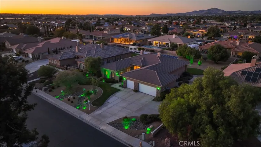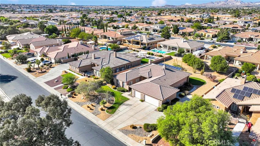 Welcome to 19274 Kanbridge St located in one of the most exclusive communities in the High Desert. Stonebrook Estates. As you walk past the gated courtyard you are greeted with an inviting living room and 12-foot ceilings. A bar nook completes this space perfect for entertaining family and friends. This home features a bright, open floor plan with a beautifully appointed kitchen showcasing granite countertops and a spacious breakfast nook. A formal dining room offers the ideal setting for family dinners or hosting special occasions. The primary bedroom is thoughtfully positioned for privacy, separate from the other bedrooms. It features a luxurious ensuite bath with dual vanities, a jetted tub, a walk-in shower and dual closets – one of which is a walk-in. Enjoy the warmth and charm of not one, but three fireplaces, located in the living room, breakfast nook and primary bedroom. You have an indoor laundry room with storage cabinets. A three-car garage to store your toys. RV parking potential. Outside, both the front and backyard feature low maintenance desert landscaping, providing beauty and ease of care. Home is equipped with solar panels for energy efficiency. Who needs a high maintenance pool when you are a house away from it? Stonebrook Estates offers private security patrol, tennis and pickleball courts, a community pool, clubhouse and is only minutes away from shopping and dining.