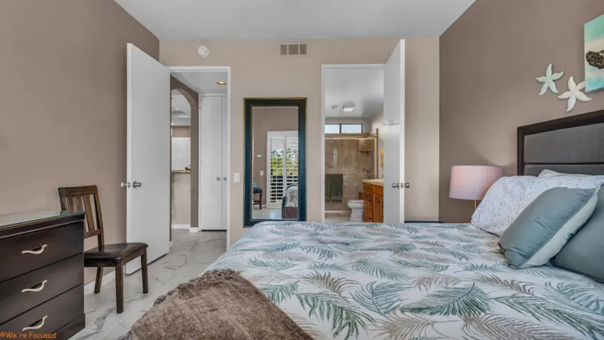 Remodeled Southwest facing condo, this Alameda condo is not just a property; it’s a lifestyle upgrade waiting to happen! With two fabulous en-suite master bedrooms, contemporary finishes that shouts sophistication, and breathtaking southeast-facing views, it’s the perfect canvas to paint your dream home. Imagine entertaining friends on your patio surrounded by desert landscaping & views of the Lagos 5 fairway and south mountains – it’s like your own private oasis! Plus, with ample storage and a kitchen equipped with newer appliances, you’ll be living the high life! Make this one yours today!Land lease – 2044 – Monthly Ground Rent $186.94.The Desert Princess has an affordable 27-hole PGA Championship golf course, no Tee-time lotteries, no initiation fees, rated among the best in the valley by GOLF DIGEST. This quiet community is away from the noise yet minutes from everything that is in Palm Springs; restaurants, shopping, casinos, an international airport, the Tramway, Art Museums, Theaters, Acrisure Arena and the Street Fair.