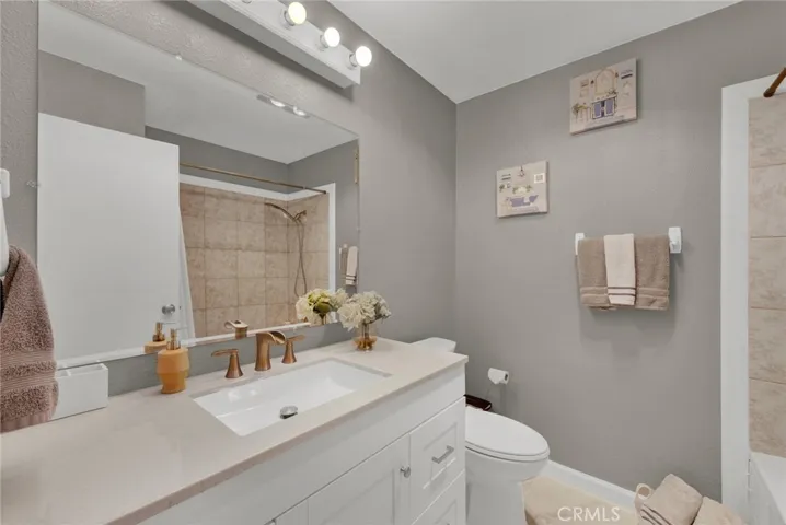As you walk to the front door, you’ll notice one of two serene koi ponds. Step inside to a freshly updated interior, styled in warm farmhouse tones that create a welcoming atmosphere. Down the hall are two bedrooms, perfect for family or guests, while the spacious primary suite offers a private bath with dual sinks and a walk-in shower.