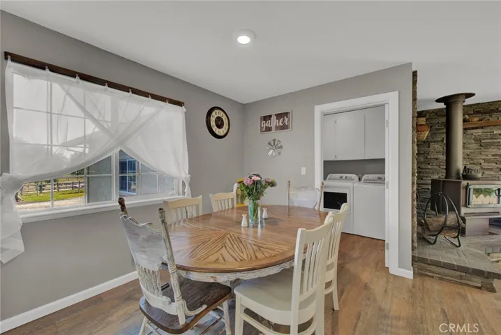 The bright kitchen, with a window over the sink overlooking the yard, flows into a cozy living room where you can relax by the wood-burning fireplace. A large game room, complete with pool table, dart board, and built-in safes, provides endless opportunities for fun.
