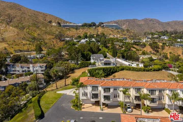 Exquisite, spacious and remodeled END UNIT townhome that gracefully faces the serene green belt, with beautiful wide-open views from every space. Nestled within Toscana, one of Malibu’s most coveted gated communities. This contemporary 2-bedroom, 3-bath residence boasts an abundance of natural light, spacious rooms, open-concept living and dining areas, perfect for entertaining or relaxing in style. The sophisticated chef’s kitchen features a generous center island, Viking range, pantry, breakfast bar seating that flows seamlessly into a cozy family room, which opens to a private outdoor patio, one of the largest in the entire complex. Main living room area has beautiful end unit views, a large patio and private grassy yard. Ascend to the upper level, where you’ll find a welcoming guest room and bath, a convenient laundry room along with a versatile bonus office/den area. The crowning jewel is the ocean view primary suite, complete with a delightful balcony, a spa-like bathroom showcasing a rejuvenating jacuzzi tub, glass enclosed shower, double-sided fireplace and a sizable walk-in closet for all your luxury needs. With soaring high ceilings and skylights, this home exudes elegance and warmth. There is an attached two car garage with storage. Residents of Toscana enjoy a wealth of community amenities, including a sparkling pool, recreation center and gym, all just a stone’s throw from the vibrant offerings of Pepperdine University, Malibu Racquet Club, fine dining, trendy shops, Whole foods, hiking trails and beaches. Embrace the Malibu lifestyle that awaits you in this desirable gem of a community.