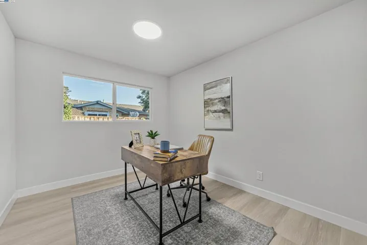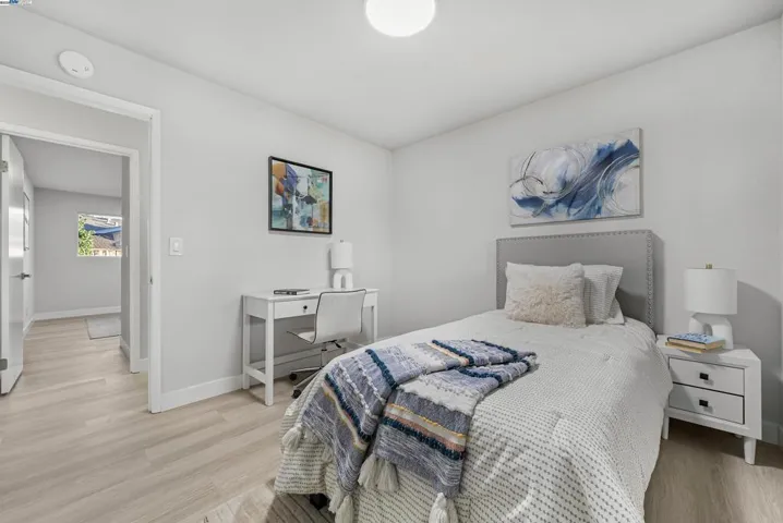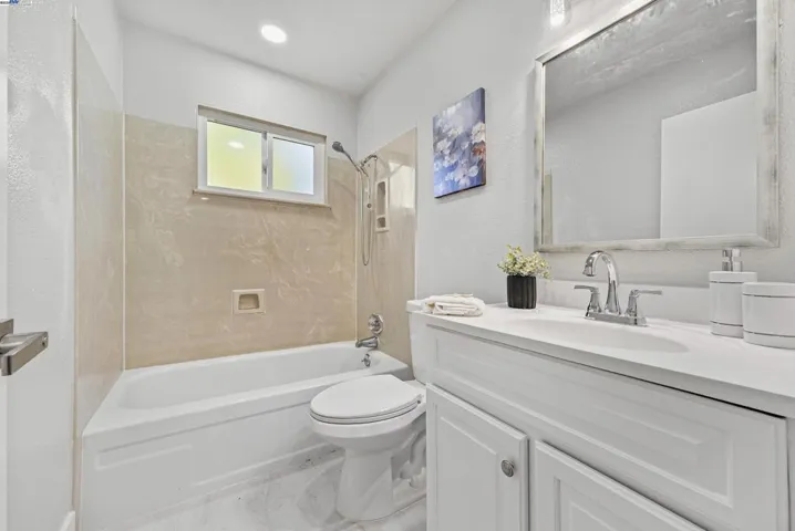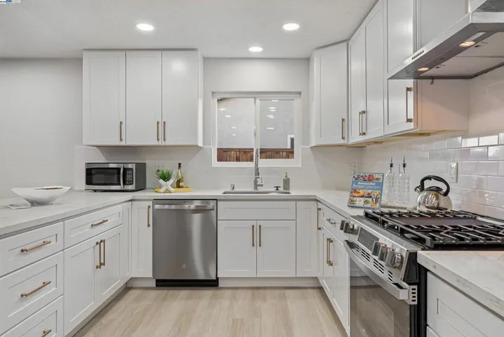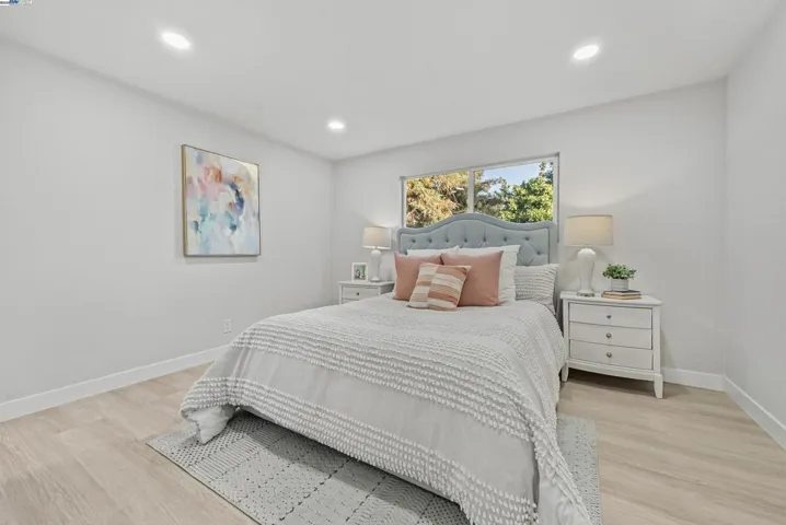This thoughtfully remodeled open-concept home in the desirable Northgate neighborhood highlights modern design, quality craftsmanship, and attention to detail. Featuring 4 spacious bedrooms, 2 updated bathrooms, and a finished 2-car garage, the residence offers 1,402 sqft of living space on a 7,190 sqft lot. Recent upgrades include fresh interior and exterior paint, luxury vinyl plank flooring throughout, tile flooring in both bathrooms, and 24 new recessed lights. The chef’s kitchen is appointed with quartz countertops, new cabinetry, a full tile backsplash, stainless steel appliances with gas cooktop, and connects seamlessly to the expansive living room and entry hall—ideal for everyday living and entertaining. The landscaped front and rear yards provide inviting outdoor spaces. The large backyard features side access to a concrete parking area and presents excellent potential for an ADU, pool, or private retreat. Located near top-rated schools—Warwick Elementary, Thornton Junior High, and American High—this property also offers easy access to Decoto Road, the Dumbarton Bridge, Union City BART, and I-880 for convenient Bay Area commuting. Combining contemporary upgrades, a functional layout, and a prime location, this home is an exceptional opportunity in Northgate.