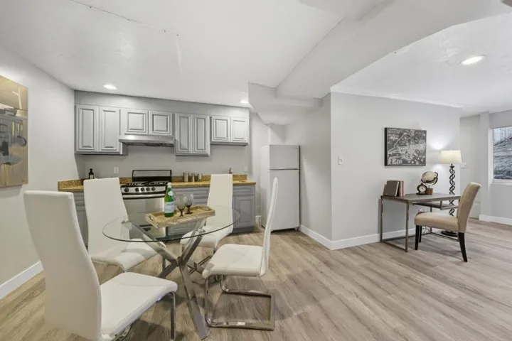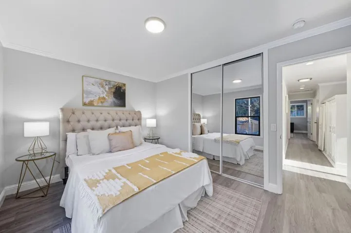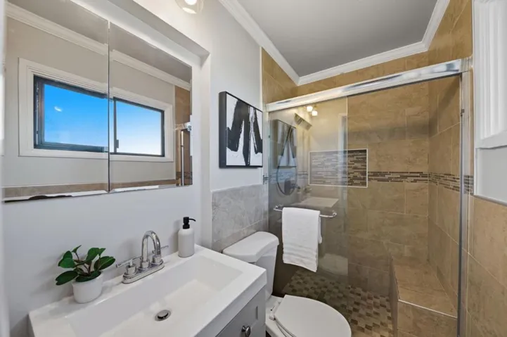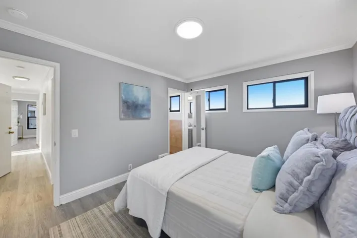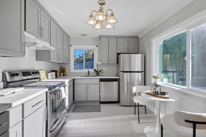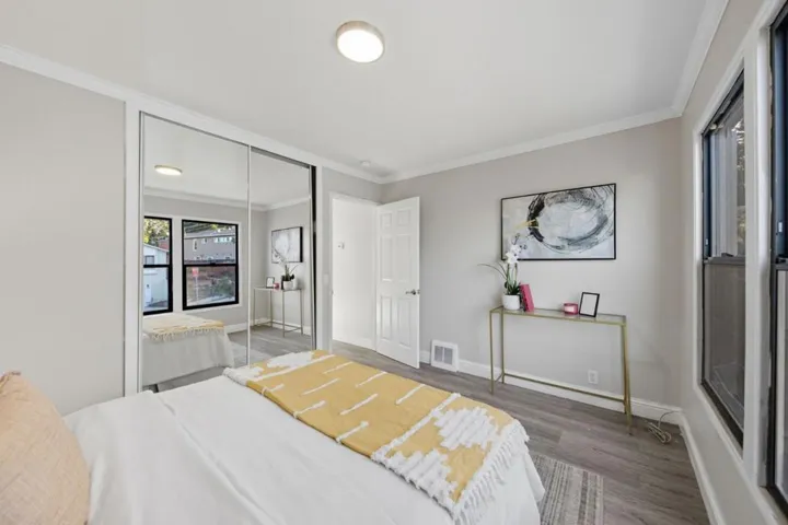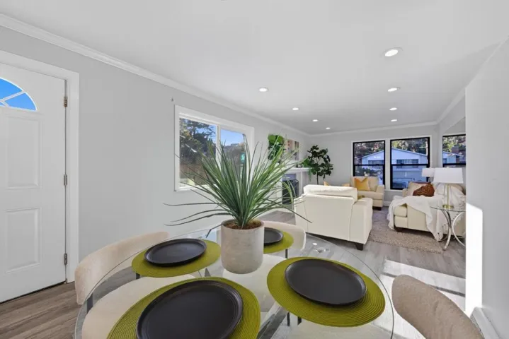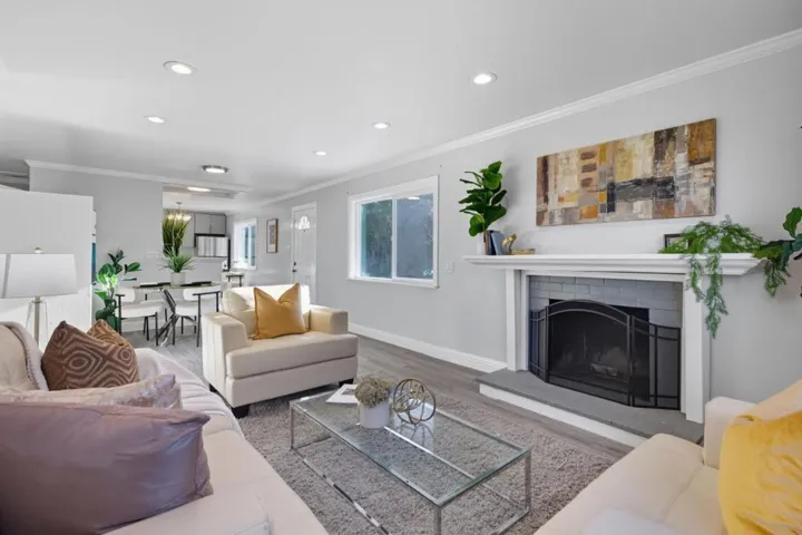 Situated on an oversized corner lot in the desirable Rollingwood neighborhood, this beautifully updated home offers the perfect blend of space, style, & versatility. The expansive front yard sets the tone, showcasing spectacular panoramic views & incredible curb appeal. Inside, thoughtful design & modern updates/remodeling create a warm atmosphere. The open-concept kitchen & living room area flow seamlessly together, ideal for both hosting & everyday living. The updated kitchen features high-end appliances, a dining area, & sleek finishes. Upstairs, you’ll also find 3 comfortable bedrooms & 2 pristine bathrooms, including a luxurious primary suite w/ its own private bath. Other highlights include recessed lighting, storage cabinets, large windows, a remodeled garage, & tasteful flooring. The newer lower level offers exceptional flexibility, serving as a separate living quarter complete with its own updated full kitchen, bedroom, bathroom, & private entrance, perfect for multi-generational living or potential rental income. Enjoy a spacious backyard plus convenient access to Highway 280 for an easy commute between Silicon Valley & San Francisco. Families will appreciate proximity to top-rated schools, as well as downtown San Bruno’s popular shops & restaurants just minutes away.