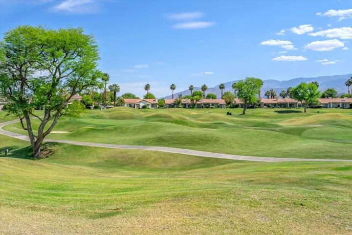 Stunning mountain views. Watch the pros play in the American Express tournament from your patio! This turnkey furnished Champion 2 has many updates including new A/C unit and ductwork (2023), new vanities, all new white oak flooring, 6” baseboards, California shutters, new furniture, new dishwasher, new microwave, freshly painted throughout, new LED lighting, flat screen TV’s, new garage door, nice high ceilings. This 2 bedroom, 2 bath has a den/family room which can be a work from home space or a 3rd bedroom. HOA includes cable TV, WiFi, trash, landscaping, painting, security and eathquake insurance. Gorgeous double fairway views of Hole 14 and 15 on the famous Stadium course. Don’t miss it.