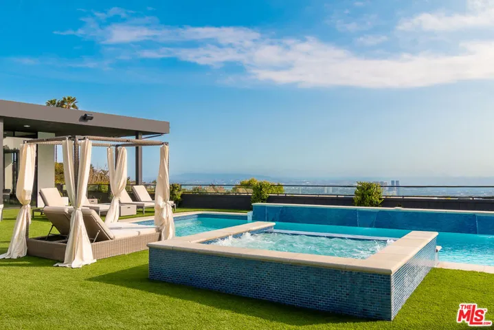 Gated Mid-Century View Home in Prime Beverly Hills Trousdale Estates. This expansive remodeled estate features marvelous city lights and ocean views endlessly stretching to the horizon. Formal entry way leads to bright and spacious floor plan with high ceilings and walls of glass. Grand living room with fireplace and fabulous city lights and tree top views. Chef’s kitchen with top of the line built-in appliances, center island and eat-in kitchen area. Spacious master bedroom with huge walk-in closet and direct entrance to expansive entertainer’s back yard with sparkling pool, spa, fire pit, BBQ and breathtaking city and ocean views. Bedroom count includes detached and attached guest units. Gated motor court with 3-car garage. Available for long term rentals and/or short term rentals with flexible lease terms.