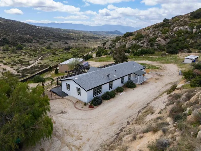 Welcome to Lewis Valley – Your Private 40-Acre Ranch Retreat in the Hills of Hemet. If you’re seeking serenity, privacy, and wide-open spaces, this property in Lewis Valley is a rare opportunity to own your own 40-acre ranch surrounded by rolling hills and breathtaking views. Property Features: Peaceful, secluded, and tucked away off a dirt road with no street noise. 2,400 Sq. Ft. Manufactured Home – Recently remodeled with 3 bedrooms, 2 full baths, a spacious living room with vaulted ceilings, and an additional 600 Sq. Ft. bonus family room. Updated Interior Finishes – Luxury vinyl plank flooring, new kitchen with updated cabinetry, counters, and hardware, fresh baseboards, and large dual-pane windows bringing in natural light and framing scenic views. Primary Suite – Private bath with a walk-in shower, soaking tub, dual sinks, and ample storage. Generous Guest Bedrooms – Spacious with picturesque views of the surrounding hills. Interior Laundry Room – Convenient and functional. Outdoor Living: Expansive View Deck – The perfect place to unwind and enjoy the gentle breezes and snow-capped mountains in the distance. Private Well & Pressure Tank – Providing your own water source. Newer Roof – Installed in 2007 for peace of mind. Ceiling Fans Throughout – Adding comfort year-round. Workshop / Detached Building: 60′ x 30′ Steel Building – A versatile space with electricity, water, and a separate septic system. Two Finished Rooms & Kitchenette – Ideal for a guest suite, office, or studio. Large Workshop / Warehouse Area – With roll-up doors and separate access driveway — perfect for RV storage, car enthusiasts, or agricultural use. Conex Container Included. Additional Highlights: Multiple Rough Pads – Ready for expansion, additional buildings, or potential future projects. Unmatched Privacy – Enjoy a tranquil setting without neighbors in sight. This is truly a special property offering a unique blend of rural living, privacy, and potential — ideal for ranchers, hobbyists, or anyone looking to escape the hustle and bustle. Take the back roads to Palm Desert or Temecula for some wine tasting. Bring your horses, chickens and sport utility vehicles. Schedule your private showing today and explore all the possibilities this 40-acre ranch has to offer!