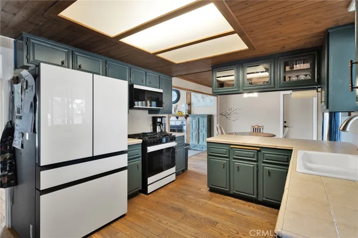 As you enter through the wrought iron gates, you’ll be greeted by a spacious property featuring a large concrete area on both sides of the home, including two carports for additional covered parking or storage and a circular driveway! Step inside to beautiful real wood floors, a step-down living room with a cozy gas fireplace and a bay window that fills the space with warm, natural light. The upgraded kitchen showcases all new appliances, including a five-burner stove, and stylish finishes that make it a chef’s dream. Down the hall you will find two large bedrooms and the guest bathroom with a rustic, elegant touch. The primary retreat, 3rd bedroom, features his and hers closets, dual sinks, a soaking tub, and sliding glass doors leading out to the patio—perfect for morning coffee or evening relaxation.