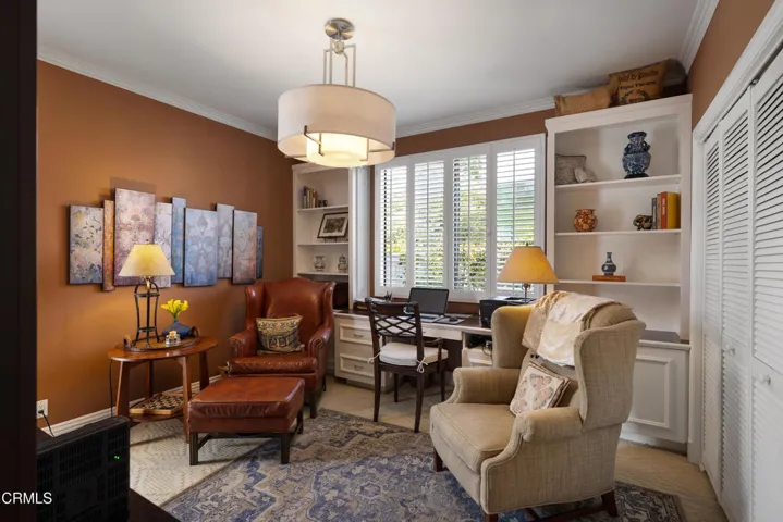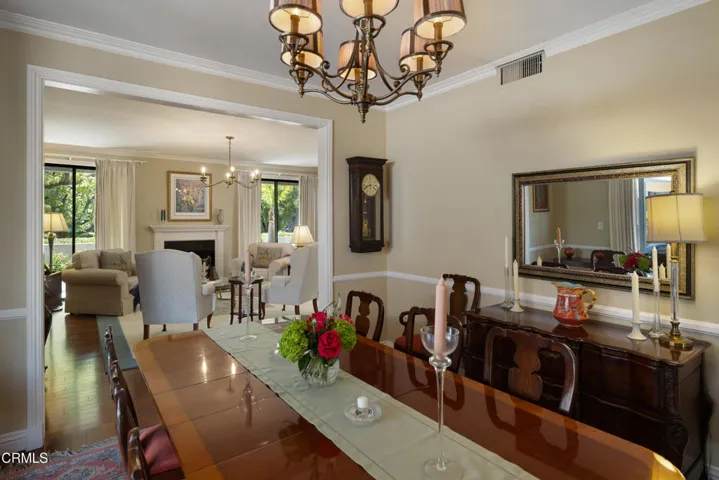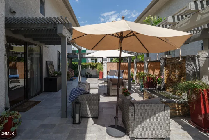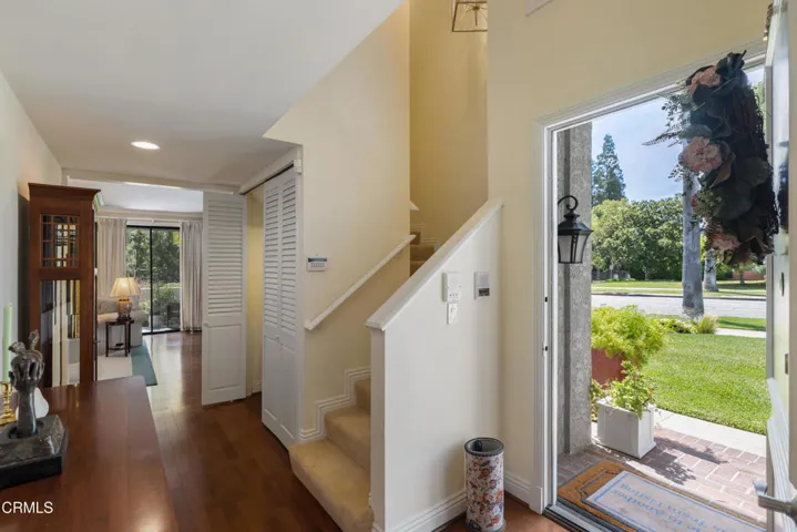 A rare luxury find nestled on the corner of Orange Grove and Madeline Drive, this freestanding residence offers the privacy and feel of a single-family home with the convenience of luxury condominium living. With no shared walls, timeless architecture, and expansive indoor-outdoor spaces, this one-of-a-kind property is an entertainer’s dream in one of Pasadena’s most sought-after locations. Lush and vibrant landscaping leads you to the front door, where, beyond the grand front entry, hardwood floors lead into elegant living and dining rooms adorned with crown and chair rail moldings. A gas fireplace with a stone hearth and classic white mantle creates a warm focal point in the living room, where dual glass sliders open to a private side patio. A built-in wet bar adds ease for entertaining, while the dining room seamlessly connects to the patio. The gourmet kitchen impresses with stone counters, a custom backsplash, a farmhouse sink, a 5-burner Samsung range, dishwasher, and breakfast nook with sliding doors that open to the back patio oasis. The flexible floor plan includes a downstairs bedroom (currently used as an office/den space) and an adjacent stylish 3/4 bath. Upstairs, two well-sized bedrooms share access to a generous balcony, while a beautifully updated bathroom features a custom-tiled shower and dual vanity. The spacious primary suite offers a walk-in closet and a spa-inspired ensuite with dual sinks, stone counters, and an oversized shower with bench seating. The crown jewel is the expansive 1,700+ sq ft private back patio, complete with stone tile, pergola-covered lounge areas, a fountain centerpiece, and ample room for al fresco dining or sun-soaked relaxation. Additional highlights include indoor laundry, secured subterranean parking and abundant closet and storage spaces, including a private locked storage room. Perfectly situated along Pasadena’s famed South Orange Grove corridor, this residence not only delivers refined living but also front-row access to the iconic Rose Parade. A truly rare opportunity to own a stand-alone luxury home in one of Pasadena’s most prestigious settings.