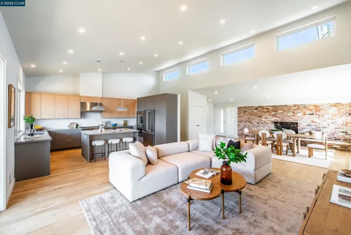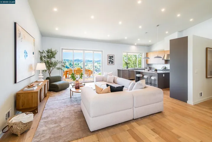 Stunning single-level retreat with panoramic views at the top of Walnut Creek! Nestled in the desirable Hillcroft area, this beautifully remodeled and expanded ranch-style home offers privacy, style, and convenience—just minutes to downtown Walnut Creek, Broadway Plaza, BART, and top-rated Acalanes schools. The light-filled living room features vaulted ceilings, expansive windows, and seamless access to an open-air deck overlooking the valley. The chef’s kitchen boasts a large center island, premium stainless steel appliances, and custom cabinetry. The spacious primary suite includes a spa-like bathroom and walk-in closet. A versatile third room is perfect for a home office, nursery, or guest space. Enjoy engineered hardwood floors, dual-pane windows, and designer finishes throughout. The resort-style backyard features a sparkling pool with baja shelf and a large lawn area ideal for entertaining, play, or pets. Experience the best of Walnut Creek living—luxury, location, and breathtaking views all in one exceptional home.