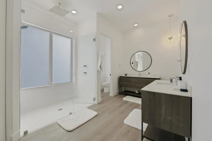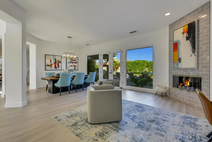 Welcome to this beautifully remodeled light and bright home featuring a spacious open-concept floor plan designed for modern living. The main residence offers Four bedrooms, including a large primary suite with a luxurious en suite bath and generous closet space.Enjoy a private detached casita, perfect for guests, a home office, or creative studio, plus a dedicated workout room for your fitness routine. The gourmet kitchen flows seamlessly into the living and dining areas, ideal for gatherings and entertaining. Step outside to a beautifully landscaped backyard oasis, complete with ample seating areas and room for outdoor dining and relaxation. This yard features a newly remolded Pool and Spa The garage includes a Tesla charger, adding convenience for electric vehicle owners. This home also features 2 recently replaced AC Units.Located in a highly convenient neighborhood, close to shopping, dining, and major routes, this home perfectly blends style, comfort, and functionality–a true move-in-ready gem.