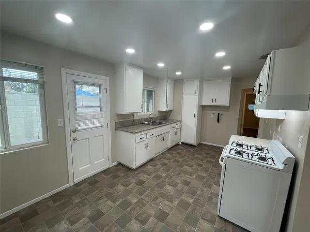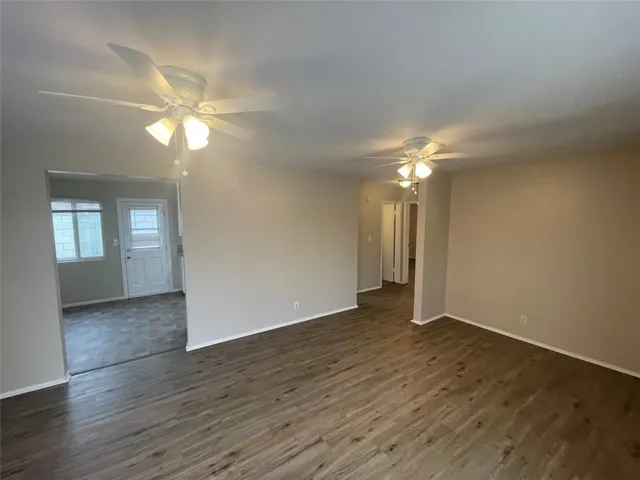 This the back house on the lot of three houses. New paint and flooring. Two bedrooms one bathroom, two car garage, long driveway for additional parking and a private backyard for bbq, entertaining and relaxing. Washer and dryer hookups in the garage.