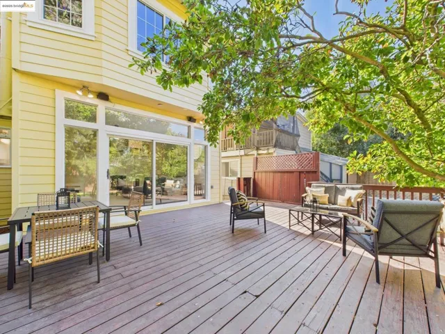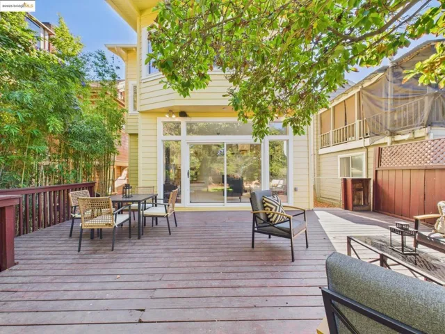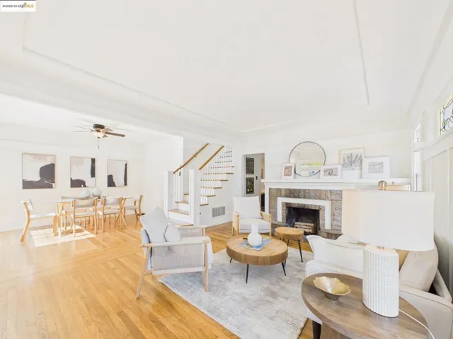Welcome to 1017 Lincoln Avenue, a timeless Alameda bungalow with thoughtful updates and surprising space throughout. Beyond its Craftsman style and regal front porch, this light-filled home blends original charm with modern versatility. Features include a fireplace with stained-glass window, hardwood floors, vaulted ceilings, stylish updates, and abundant natural light. The main level offers a gracious living/dining room, a bedroom suite with full bath, eat-in kitchen, and a large, sunlit family/great room with seamless indoor-outdoor flow. Sliding doors open to a generous deck and park-like yard framed by stately Redwoods—ideal for gatherings or quiet retreat. Nautical-inspired touches like a round window and curved wall nod to Alameda’s island history. The kitchen includes an island, custom pantry, and stainless appliances, while a hidden door off the laundry nook reveals basement storage and a long driveway provides ample parking. Upstairs features airy vaulted ceilings, three additional bedrooms, a bright office/nursery, and a beautifully tiled full bath—all minutes from Park & Webster shops, cafés, beaches, and the historic Alameda Theatre.
