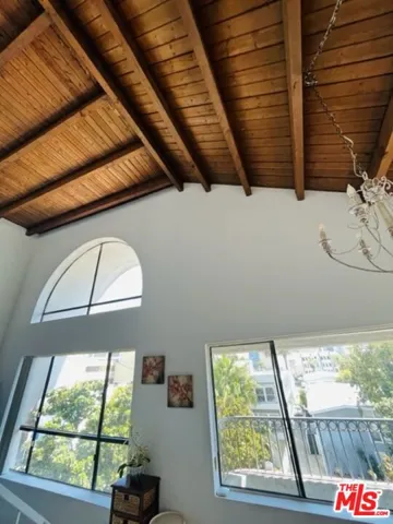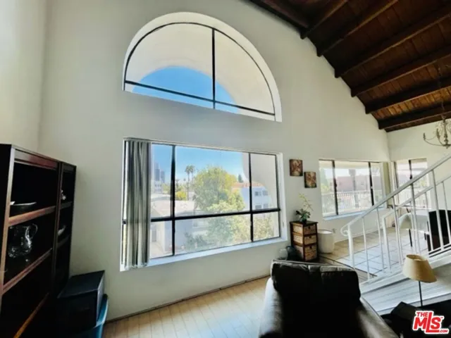 Beautiful bright top floor penthouse two story condominium unit with high ceilings in prime Beverly Hills. Master bedroom, 2nd bedroom, two bathrooms, Living, Dining room, & Kitchen on the first floor. Stairs lead up to 2nd floor where the hallway leads to private spacious outdoor patio and also the 3rd bedroom/or office. Feels like a single family home. Washer/Dryer in the unit. Central A/C & Heat. Building amenities include outdoor pool, elevator. Two car tandem underground gated parking. Great city & street views in living and dining room areas. Located less then a block away from the Beverly Hills La Cienega Park and minutes to the Beverly Center, Rodeo Drive, The Grove, L.A.C.M.A, & other Museums. Close to houses of worship. Unit can also be delivered mostly furnished for an additional $500 per month.