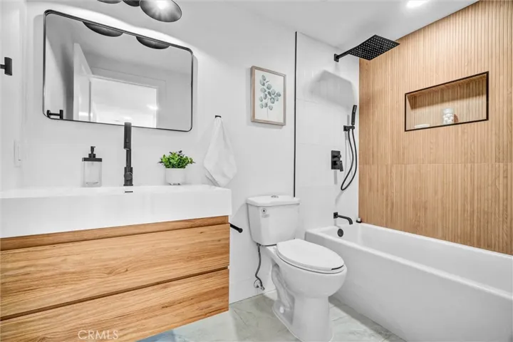 Stunning and rarely available luxury home in one of Cerritos’ most sought-after neighborhoods, located within the top-rated ABC Unified School District. This fully renovated two-story residence features new laminate flooring throughout, recessed lighting, and stylish modern fixtures. The open-concept layout highlights a brand-new kitchen with quartz waterfall countertops and stainless-steel appliances, seamlessly connecting the living and family rooms. The spacious master suite offers cathedral ceilings, a private balcony, and a beautifully upgraded bathroom with a bathtub inside the shower. Additional features include a bedroom and full bath downstairs, a guest half bath, central AC, and a backyard with a sparkling pool—perfect for entertaining. Conveniently situated near major freeways, parks, and shopping centers, this home is a rare opportunity to own a move-in-ready property in one of Cerritos’ most desirable communities.
