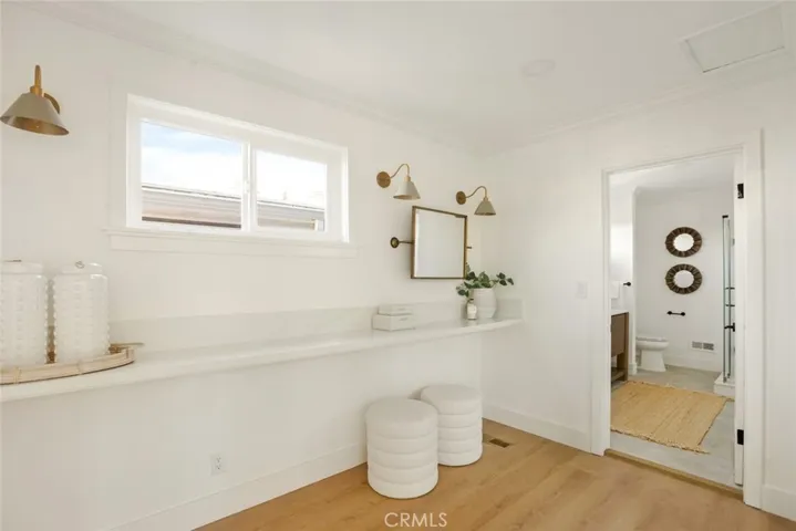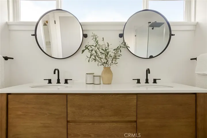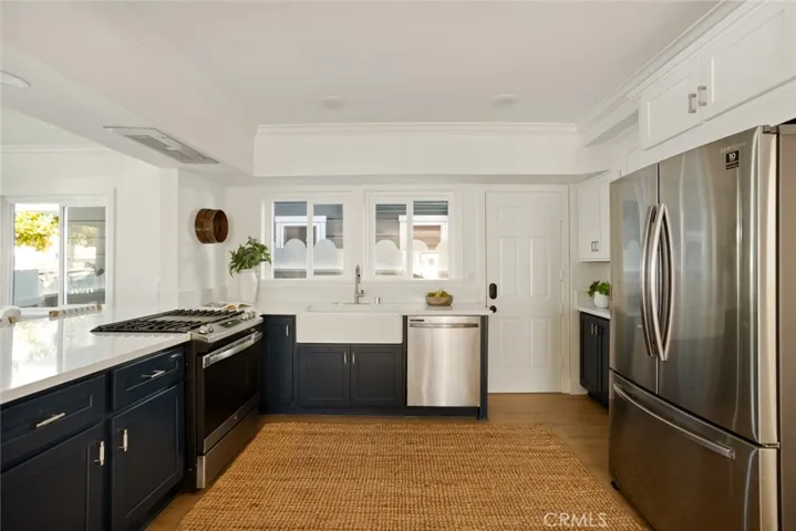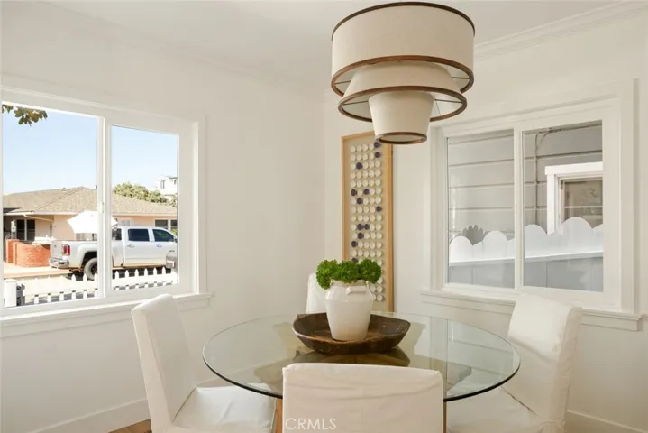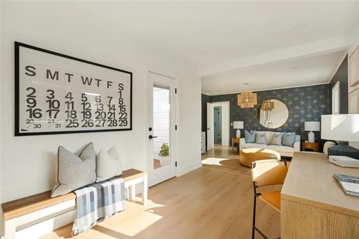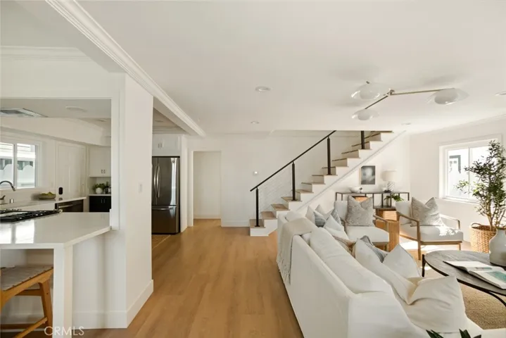 Nestled in the heart of Newport Beach’s coveted Balboa Peninsula, just two blocks from beaches along the Pacific Ocean and nearly as close to Newport Bay, this exceptionally upgraded and remodeled home is destined to enhance your lifestyle. Stroll to fashionable cafés, restaurants, shops and galleries, or relax at home on your inviting front patio, complete with a classic white picket fence. Beyond the Dutch entry door, a reimagined first level reveals open-concept style with a seamless dining room, living room and kitchen. A custom mantlepiece and white stone hearth grace a corner fireplace, while the new kitchen opens to the dining room with a passthrough bar and hosts Shaker cabinetry, stainless appliances, quartz countertops and a door to the side yard. Elegant craftsmanship is revealed through the inclusion of crown molding, wide white oak-inspired luxury vinyl plank flooring, designer lighting fixtures and custom wall treatments. Approximately 2,630 square feet, the four-bedroom, three-bath residence continues indoor/outdoor living on the second level, where a private deck is accessed by a versatile den, the primary suite and a secondary bedroom with separate entrance, making it perfect for guests. A spiral staircase leads from the main deck to a sunny rooftop deck with panoramic city-light views, and both decks are finished with slotted wood flooring. The primary suite showcases a sitting area, wood-finished accent wall, a romantic fireplace with floating hearth, a spacious dressing area with mirrored wardrobes, and a new custom bath with rain shower, freestanding tub and dual sinks. Further enrichments are led by recessed LED lighting, upgraded windows and sliding-glass doors that bathe interior spaces in natural light, a fresh white color palette, and an attached two-car garage. Close to The Wedge, a world-renowned surf spot, and minutes from Fashion Island, Balboa’s pier and Fun Zone, scenic parks, golf courses and luxury resorts, this turnkey home presents the ultimate mix of style, functionality and proximity to the water.