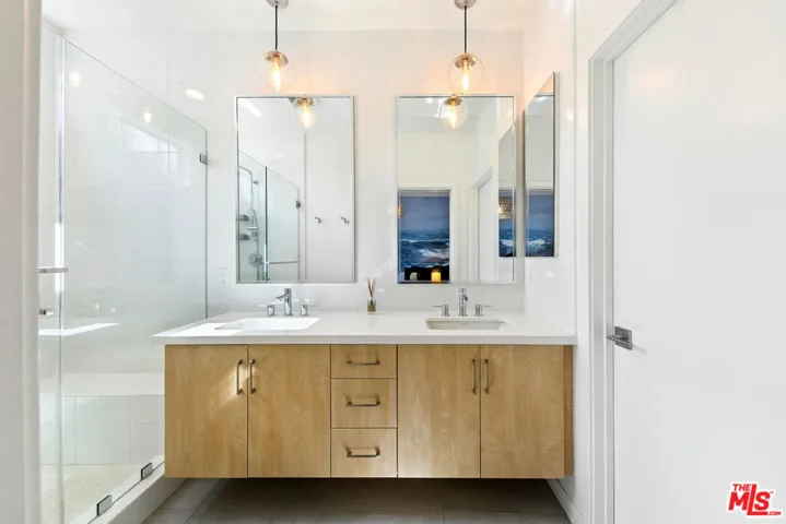 Welcome to modern Glassell Park living at its finest. Finished in 2020, this home sits elevated above the street, placing your main living space on the top floor where oversized windows capture natural light and frame beautiful San Rafael Hills views. The open floor plan seamlessly connects living, dining, and a sleek kitchen with breakfast bar and KitchenAid stainless steel appliances perfect for entertaining or everyday life. Recessed lighting throughout enhances the contemporary aesthetic, while the flow from indoor to outdoor living leads you to your private rooftop deck with breathtaking 360-degree views. Imagine sunset gatherings, morning coffee rituals, or weekend brunches with the cityscape as your backdrop. The thoughtful layout provides 2 ensuite bedrooms on separate levels for ultimate privacy, each with their own full bath featuring oversized showers and modern finishes. The primary suite is a true retreat with a large walk-in closet complete with custom built-ins. A versatile bonus den off the entry adapts to your lifestyle – home office, exercise room, creative studio, or guest space. The convenient half-bath on the main level keeps the flow effortless when hosting. Beyond the home’s impressive features, the location delivers exceptional value. You’re positioned in the heart of Glassell Park near Michelin-recognized Dunsmoor, beloved Bub & Grandma’s bakery, The Grant’s craft cocktails, and Verdugo Bar. The 2, 5, and 134 freeways provide quick connections to Downtown LA, Glendale, Burbank, Pasadena, Hollywood, and Eagle Rock. Add in a two-car attached garage with car charger outlet, eco-friendly dual-pane windows, and low-maintenance hard surface flooring, and you have a turnkey newer construction home that checks every box in one of Northeast LA’s most vibrant neighborhoods.