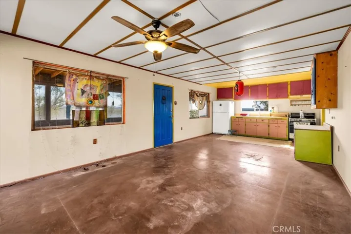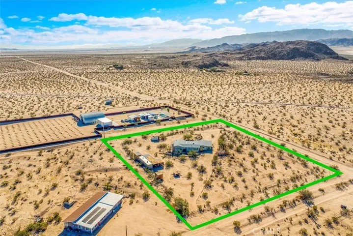 NEW ROOF, NEW EXTERIOR PAINT! Acreage & views! Come see this darling property, perched atop the Sunfair bluff overlooking the moonlight mesa area of north Joshua Tree! See both San Jacinto and San Gorgonio peaks from this location–many mile views! Its rustic and original condition offer a unique style filled with Joshua Tree character–not just another stucco box! On a fenced 2.5 acre lot, this large and roomy 2-bedroom 1-bath home features a living room with fireplace, open kitchen / dining area, a studio (converted garage) with wood stove, a storage container, carport structure, sheds and more! 15 minutes from downtown Joshua Tree and not much farther to the west entrance of Joshua Tree National Park. Come see today!