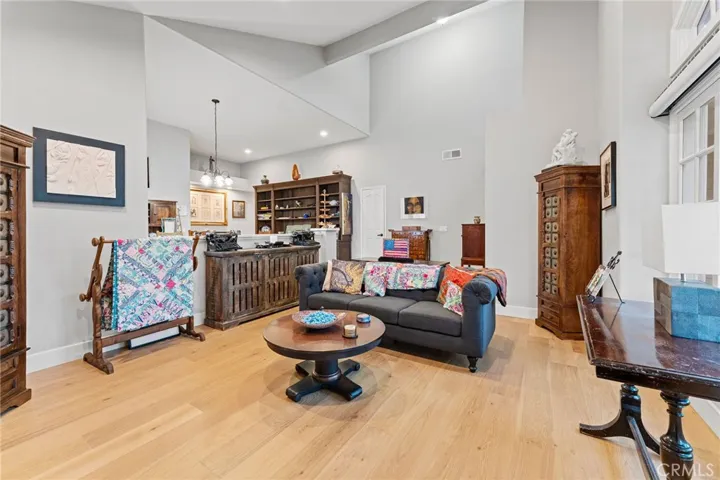From the moment you enter, the home’s light-filled design with skylight and hardwood floors set a warm, welcoming tone. The remodeled kitchen features granite countertops, KitchenAid stainless steel appliances, shaker cabinetry, and a charming breakfast nook that overlooks the garden. Nearby, a quaint coffee bar creates the perfect morning spot — a cozy corner for your daily brew before the day begins.