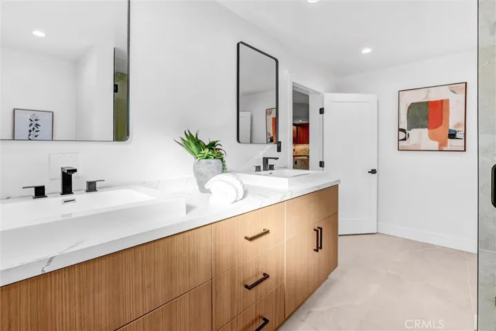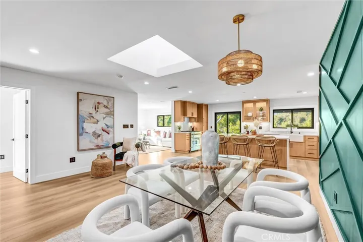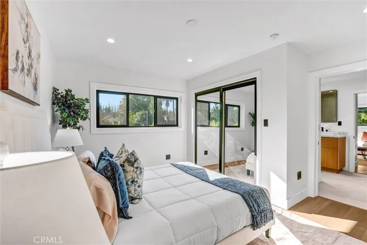 Every detail reflects quality craftsmanship and timeless design — a modern home set within one of the neighborhood’s most desirable and inviting settings. The property’s wrap-around driveway, bordered by lush ficus trees, enhances both curb appeal and privacy, offering generous parking with a carport and a large garage. Ideally located within walking distance of the shops and restaurants along Ventura Boulevard, with convenient freeway access and highly rated schools nearby.