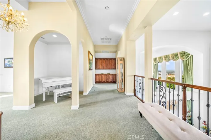 Exquisite Custom Estate with Panoramic Views in Prestigious La Cresta. Discover one of the most extraordinary homes currently available in Murrieta, offering over 6,400 sq ft of refined luxury on more than 5 acres, nestled in the highly coveted La Cresta community. Boasting 4 spacious bedrooms and 4.5 bathrooms, this exceptional property delivers the perfect blend of elegance, comfort, and functionality. Enter through a private, gated driveway to a grand double-door entrance, where you’re welcomed by soaring ceilings and a dramatic foyer with rich finishes. The open-concept layout is designed to highlight the sweeping 180-degree views of the Murrieta and Temecula Valleys, visible from nearly every room in the home. Walls of windows and glass doors seamlessly connect the indoor living space to the stunning backyard oasis. Step outside to experience true resort-style living with a sparkling pool and spa, built-in custom BBQ island, and a private guest cabana complete with its own bathroom and shower, ideal for hosting or extended stays. Entertain, relax, and soak in all this property offers. The gourmet chef’s kitchen is a culinary masterpiece, complete with high-end stainless steel appliances, granite countertops, custom cabinetry, a large center island with seating, and walk-in pantry. Entertain with ease in the formal living and dining rooms, breakfast nook, and expansive family room, all showcasing incredible views. A fully-equipped custom bar, complete with sink and mini fridge, anchors the impressive game room featuring a billiards table, shuffleboard, and a temperature-controlled wine cellar. Downstairs includes two private ensuite bedrooms, one is currently utilized as a home office with a separate entrance. Upstairs, two additional ensuite bedrooms with walk-in closets. The luxurious primary suite is a true retreat- enjoy sunrises from your private balcony, unwind in the jetted tub, sauna, or massive walk-in shower, and enjoy the expansive walk-in closet with built-in cabinetry and an adjacent private gym. Additional features include an attached 4-car garage with built-in storage, central vacuum system, water softener, security system with cameras, and a solar power system. Set within one of Murrieta’s most sought-after communities, this property offers tranquility, privacy, and easy access to top-rated schools, shopping, dining, and the renowned Temecula wine country. This one-of-a-kind estate is a rare opportunity-schedule your private tour today!
