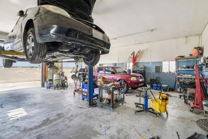 Prime commercial opportunity in Salton City! Once the community fire station, this iconic building now operates as a successful auto repair garage. The spacious garage offers ample work area, storage, and vehicle access. The rear of the garage is a comfortable 2-bedroom residence featuring a recently renovated kitchen, updated bathroom, and open living space. Perfect for an owner-user seeking both a thriving business location and on-site living.