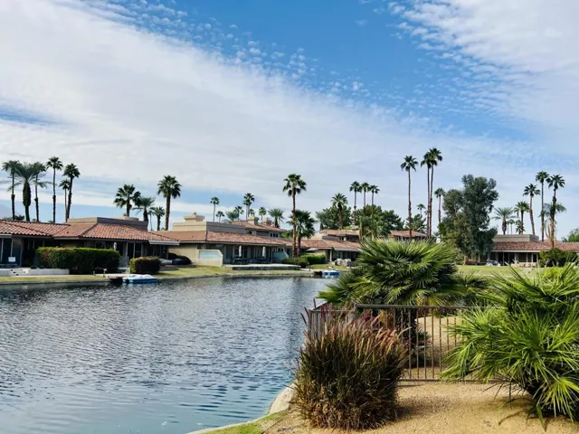 Nestled within the heart of Lake Mirage, this beautifully updated 3-bedroom, 3-bath residence combines comfort, elegance, and resort-style living. Step inside to a light-filled, open floor plan featuring tile and wood-look flooring throughout, classic wood shutters, and soaring cathedral ceilings. A double-sided fireplace warms both the living and dining areas, creating an inviting atmosphere for relaxing or entertaining. Expansive windows frame panoramic views of the lake and surrounding mountains, while the spacious patio invites you to enjoy tranquil mornings or sunset gatherings by the water. The primary suite offers peaceful lake views, a generous walk-in closet, and a luxurious ensuite bath complete with jetted tub and separate shower. Each bedroom features direct access to its own bathroom, ensuring privacy and convenience for all. This highly desired floor plan offers the ease of single-level living–no interior steps–and includes an assigned dock, perfect for a small electric boat or kayak. Located within the prestigious Lake Mirage Racquet Club, residents enjoy world-class amenities including 25 acres of open lake for sailing and rowing, scenic jogging and cycling paths, 10 tennis courts, 2 pickleball courts, 11 pools and spas, a fitness center, and a clubhouse ideal for private gatherings. All set within a guard-gated community just minutes from premier shopping, fine dining, and top-rated healthcare in the heart of Rancho Mirage.