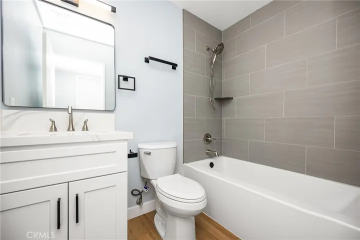 Welcome to The Colony! Nestled in a beautiful, well-established, and family-oriented neighborhood, this stunning four-bedroom, three-bath home has been completely remodeled. The bright, modern kitchen features stainless appliance, crisp white cabinetry, oversized island, breakfast bar and dinning area, beautiful countertops, and natural-toned flooring throughout. Enjoy a cozy family room with high ceilings and modern fireplace. There is a convenient downstairs primary bedroom, along with two guest bedrooms and a hallway bath. Upstairs, you’ll find an enormous primary suite offering elegant bathroom with privacy and comfort. Landscape front and back with fruit trees and new sod. Additional upgrades include high ceilings, laminate flooring, ceiling fans, new air conditioning, heating system, water heater, new windows, new roof, and fresh paint. Enjoy the association amenities with private clubhouse, Olympic-size pool, spacious parks, BBQ Area, Clubhouse, tennis courts and basketball courts, and tree lined jogging paths. Located on a quiet cul-de-sac, this home is centrally positioned near shopping centers, freeways, and award-winning schools. This is one property you won’t want to miss!