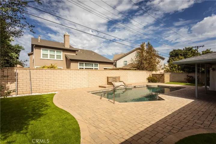 This beautifully updated 4-bedroom, 2.5-bath home blends timeless character with modern sophistication, offering the perfect balance of style, space, and functionality. Fresh exterior paint and a well-manicured front yard enhance the home’s impressive curb appeal. Inside, you’re welcomed into a sunlit formal living room anchored by a stunning fireplace, creating a warm and inviting atmosphere. The formal dining room exudes classic elegance, highlighted by a central chandelier and natural light. The remodeled kitchen features rich mahogany cabinets, granite countertops, modern appliances, and a large island—perfect for both cooking and entertaining. A picture window above the sink brings in even more natural light. The kitchen opens seamlessly to the family room, making it ideal for gatherings and everyday comfort. This thoughtfully designed layout includes four spacious bedrooms and 2.5 updated bathrooms, offering flexibility for families, guests, or extended living. The expansive primary suite serves as a true retreat, complete with an en-suite bathroom and backyard access. Step outside to a private, low-maintenance backyard oasis featuring a sparkling pool, a large covered patio, a tranquil waterfall and new turf—perfect for relaxing or hosting unforgettable get-togethers. Additional upgrades include: New tankless water heater, Tesla solar panels, newer HVAC system and A/C, fresh exterior paint, artificial turf in both front and backyards. Located in the heart of North Santa Ana, a neighborhood known for its strong community spirit and events like the annual Home & Garden Tour and lively block parties. You’ll enjoy easy access to major freeways & shopping. Don’t miss you chance to take a trip down Memory Lane!
