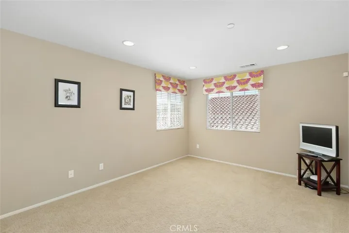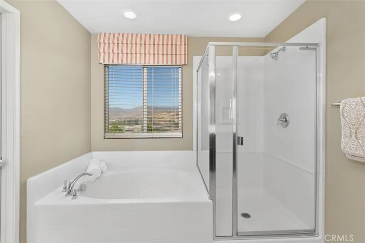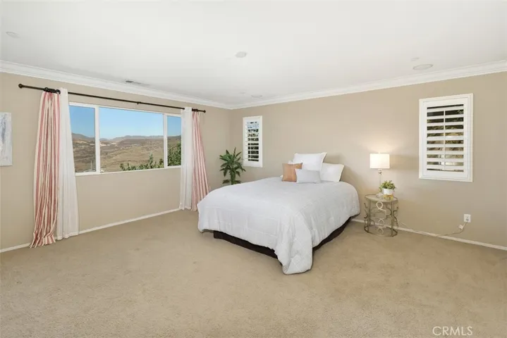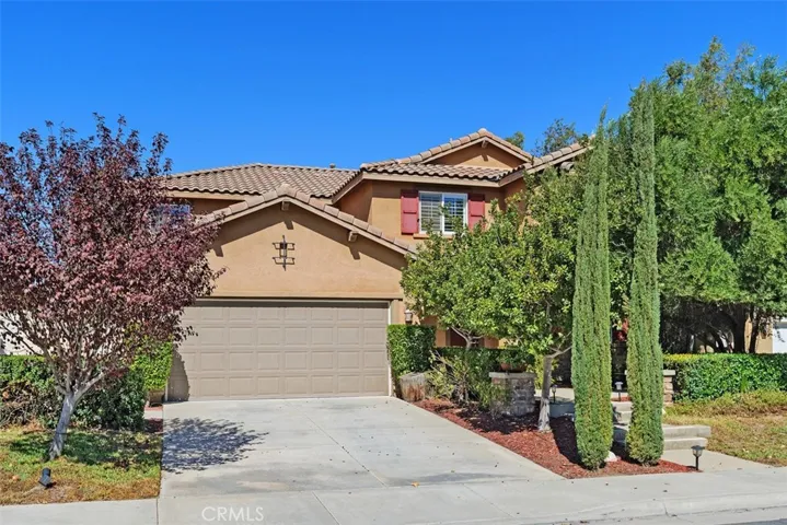 This stunning former model home in Amberhill Ranch offers panoramic mountain views from its elevated 5,663 sq ft lot and features five spacious bedrooms, (including a main-floor suite), plus a versatile upstairs loft. The formal dining room has a butler’s pantry and flows seamlessly into a gourmet kitchen equipped with rich wood cabinetry, wood floors, granite countertops, stainless steel appliances, a large island, and abundant storage. The great-room style family room boasts surround sound, a cozy fireplace, and breathtaking views. The nearby main floor bedroom with en-suite bathroom is great for guests. Upstairs, the luxurious upstairs primary suite includes crown molding, built-in speakers, and a spa-like bathroom with travertine floors, dual sinks, a soaking tub, separate shower, and oversized walk-in closet. Additional highlights upstairs include the large bonus room/loft, three additional bedrooms, dual-sink bathroom, an upstairs laundry room, whole-house fan, and dual-zoned A/C. The flat, usable backyard offers privacy, breezes, and space for a pool or play area. 3 car tandum garage offers convenient space options. Located within walking distance to a new elementary school and resort-style HOA amenities including a pool, splash zone, clubhouse, and parks, this home is just minutes from the I-15 freeway, Lake Elsinore Outlets, and the lake, plus offers easy access to Corona, 25 min to Temecula and 50 min to Orange County. This property is the perfect place to call home.