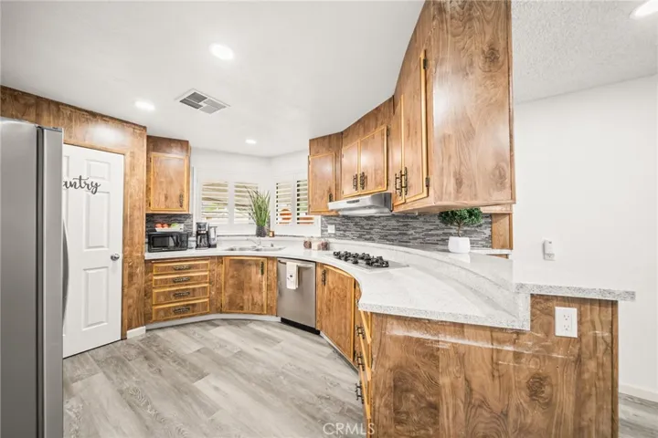 Enjoy stunning San Jacinto Mountain views from this spacious 2-bedroom, 2-bath manufactured home on a 7,405 sq. ft. lot — you own the land! Featuring 1,440 sq. ft. of open living space with NEW laminated flooring throughout, New shutters, New recessed ceiling lighting, vaulted ceilings, abundant natural light, and a bright kitchen that opens to the dining and family areas.
