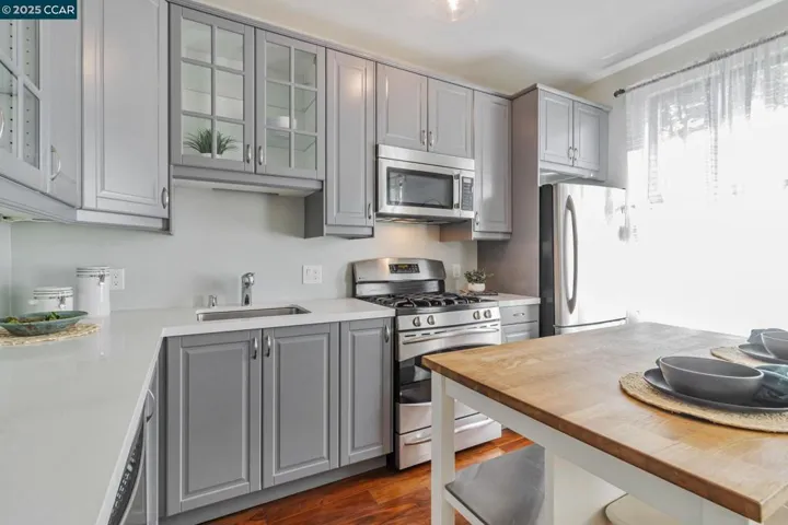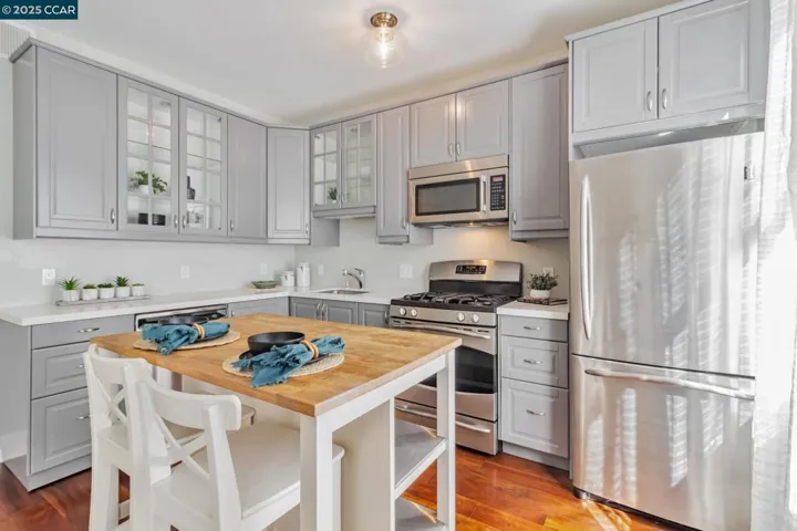 Modern Comfort in the Heart of Piedmont Avenue Welcome to Il Piemonte — a boutique 26-unit community wrapped around a serene, landscaped courtyard. This stylish one-bedroom condo combines contemporary design with unbeatable location. Step into a spacious great room with soaring ceilings, oversized windows that flood the space with natural light, and wide plank flooring throughout. The expanded, modern kitchen features quartz countertops, stainless steel appliances, and elegant glass-front cabinets — perfect for cooking at home or hosting friends. The quiet bedroom overlooks the courtyard and includes a generous walk-in closet. A secured, gated garage spot is included, with EV charging available for residents. Elevator access. Enjoy sunsets or weekend hangouts on the shared rooftop deck. Just outside your door, discover all the charm of Piedmont Avenue — from neighborhood favorites like Fentons and Piedmont Market to everyday essentials like Safeway and Starbucks, all within a short stroll. Whether you’re commuting to UC Berkeley or Kaiser Oakland, this location makes it easy to get where you need to be — quickly and conveniently.