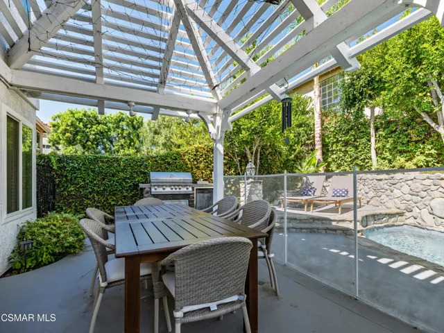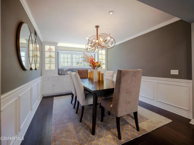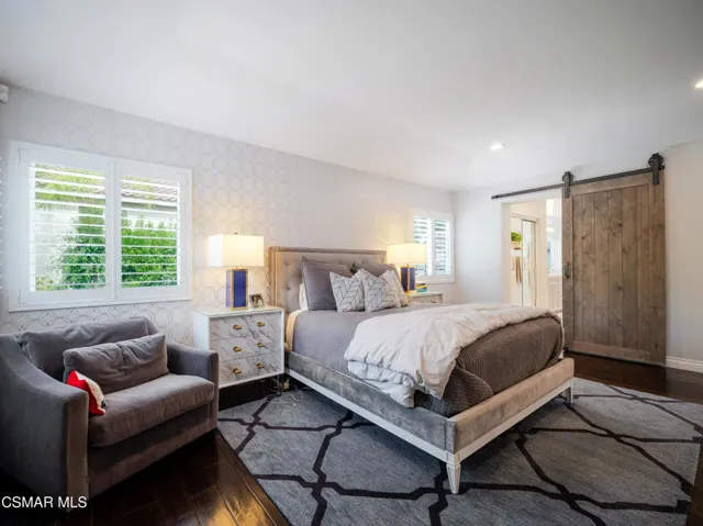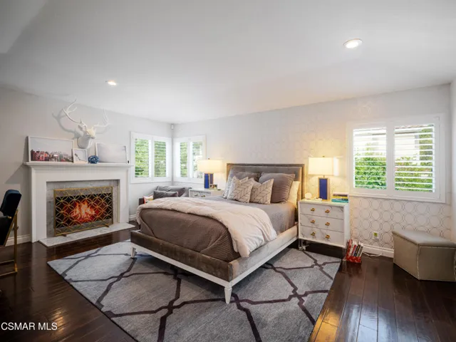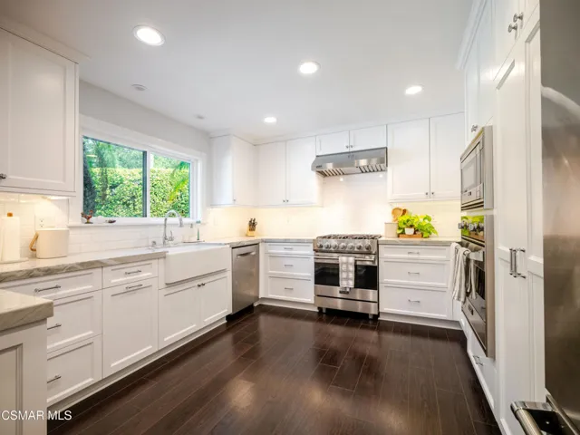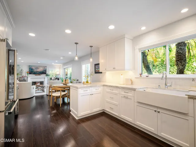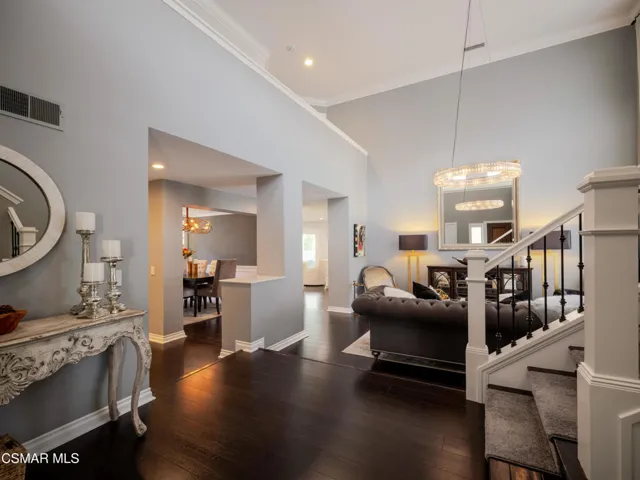 Stunning Oak Park home with 4 bedrooms and 3 full baths. One bedroom and bath located on the first floor. No expense spared on this recently remodeled home on a corner lot. Smart Home features include Nest smart HVAC system and Ring home Security system. Hardwood floors, double-paned energy efficient windows, slider and wood shutters. Recessed lighting, crown molding and built in speakers. Remodeled kitchen with Viking appliances, built in wine rack. Eating area between kitchen and large family room. Formal dining room with built-in cabinets. Living Room with vaulted ceilings and French Doors leading to side yard. Large Primary Suite with custom dual walk-in closets and gas fireplace. Remodeled primary bathroom: Quartz counters, tile floors, freestanding soaking bathtub and separate shower. Beautifully landscaped backyard featuring a sparkling saltwater pool and spa with a safety fence. Covered patio, outdoor gas fireplace and sitting area. Gas BBQ, outdoor kitchen and speakers complete this entertainer’s backyard. Indoor laundry and attached 3-car garage. First time as a rental property. Gardener and Pool maintenance included.