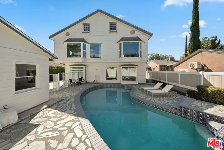 Discover this rare opportunity to own a fully remodeled five-bedroom, four-bathroom residence offering over 4,300 square feet of luxurious living space in the heart of Studio City on a peaceful, quiet street.. A half-moon front driveway framed by mature landscaping sets a grand first impression, while gated entry and covered parking provide both privacy and convenience. Inside, high ceilings, expansive bay windows, and beautiful hardwood flooring throughout create a warm and inviting atmosphere that blends timeless charm with modern sophistication. The open-concept floor plan features spacious living and dining areas that flow effortlessly into a stunning chef’s kitchen with quartz countertops, custom cabinetry, stainless-steel appliances, and designer fixtures perfect for entertaining or everyday living. Upstairs, the bedrooms are generously sized, including an exceptionally large primary suite with a walk-in closet and a spa-inspired bathroom featuring an oversized vanity, a soaking tub, and a glass-enclosed shower. Each additional bath has been tastefully updated with elegant tilework, designer hardware, and premium finishes. The top floor offers a versatile bonus level charming, light-filled bonus space ideal for a playroom, media lounge, or creative studio. A flexible ADU-style suite provides the perfect option for a home office, guest quarters, or gym, adapting easily to today’s lifestyle needs. Step outside to a resort-style backyard complete with a sparkling pool, spa, and stone patio designed for effortless indoor-outdoor living. Perfectly situated on a quiet, tree-lined street just moments from Ventura Boulevard, Tujunga Village, top-rated schools, and fine dining, this exceptional Studio City home perfectly combines space, style, and sophistication in one of the Valley’s most desirable neighborhoods.