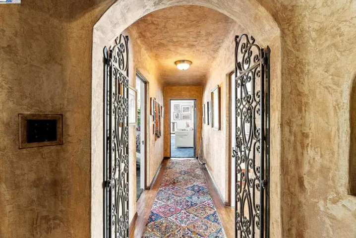 A rare opportunity to own a true Spanish Colonial estate in the heart of Hayward. Set on nearly three-quarters of an acre, this 3-bedroom, 2-bath residence offers approximately 3,488 sq. ft. of living space with timeless architectural character and exceptional privacy. Tucked away at the corner of historic Prospect Street, long regarded as “the Mayor’s Street” for its lineage of Hayward mayors and dignitaries, this estate sits beyond a private road that offers a quiet and secluded escape. The setting evokes a sense of retreat while remaining just minutes from downtown Hayward and major commuter routes. Steeped in local history, the property features the first residential swimming pool ever built in Hayward, set against panoramic views that stretch to downtown San Francisco, including the Salesforce Tower and city skyline. The pool deck and mature landscaping create a serene, resort-like ambiance rarely available at this price point. Properties of this caliber are typically found in Hillsborough or the Oakland Hills—yet here, it remains within reach. The expansive lot offers space for entertaining, gardening, or future expansion, appealing equally to those seeking a signature residence or a distinctive investment opportunity.