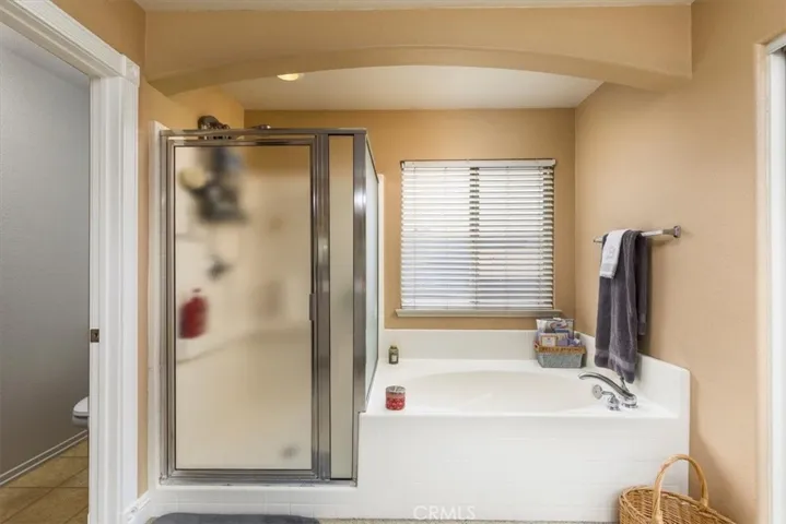 Large primary suite with walk-in closet, ensuite bath with double sinks, separate tub and shower.