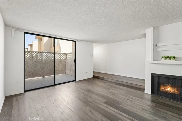 The main level features two separate dining areas, a generously sized kitchen with ample counter space and modern appliances, and a cozy living room with a fireplace — perfect for relaxing evenings at home. Just off the living area, sliding glass doors open to a private enclosed patio, ideal for enjoying your morning coffee, entertaining guests, or getting some fresh air.