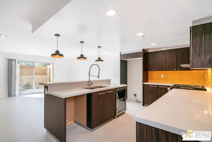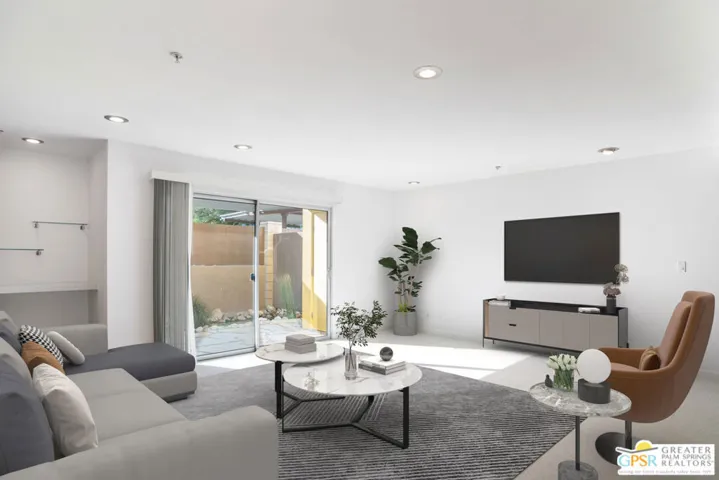 Immerse yourself in the quintessential Palm Springs lifestyle at Querencia Palms – where home is more than a place, it’s a feeling. This fully renovated 2-bedroom, 2-bath condo is part of a newly released condo conversion, now available for the first time! Offering coveted Fee Simple ownership (not leased land), the home showcases terrazzo-inspired tile, sleek new carpet, vibrant mid-century inspired finishes, and buyer’s choice for their own living room wallpaper accents. The chef’s kitchen is equipped with stainless steel appliances, while modern upgrades include keyless smart lock entry with fingerprint access and in-unit laundry. Enjoy two private patios – one overlooking the courtyard and the other opening to your own private section of the serene koi pond with flowing water features. Community amenities include a beach-entry pool and spa, outdoor BBQ and event space, three fire pits, a dog washing station and pet relief area, plus gated access with covered parking. Perfectly located in South Palm Springs just steps from downtown, the CV Link, hiking trails, and dining. Querencia Palms blends style, comfort, and convenience with a true sense of community. A desert retreat designed for personality, charm, and well-being, so you can love where you live. *Note: some photos have been digitally altered for virtual staging and to show newly painted wall color.