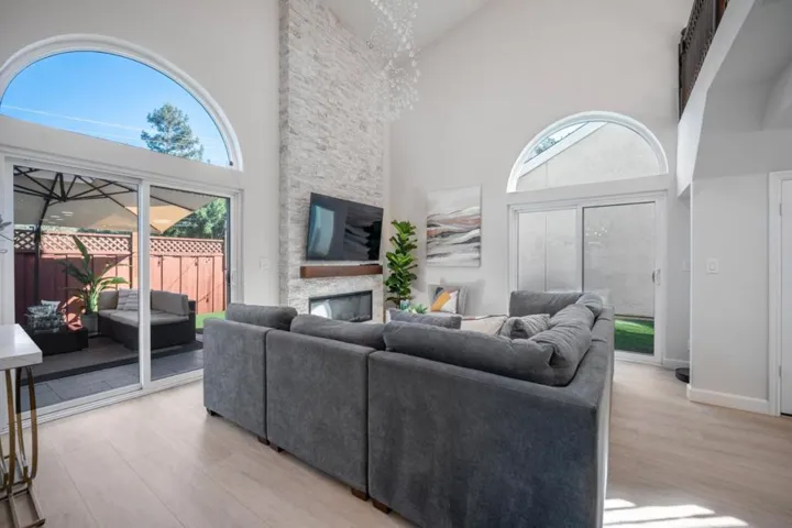 Seller is offering to pay 1 year HOA FEES! Welcome to this bright and inviting home in the highly desirable El Toro Oaks neighborhood of Morgan Hill. This beautifully updated single-family home for sale sits on a peaceful loop street with no through traffic, offering privacy, comfort, and community. Inside, tall ceilings and natural light highlight a modern, open layout. This true detached home with no shared walls has nearly $100,000 in upgrades and is completely move-in ready. Enjoy a new garage door with WiFi-enabled opener, upgraded kitchen countertops, new double-pane windows, and stylish stone plastic composite flooring. The living room showcases a new stone-tile fireplace, creating a cozy and elegant focal point. The front yard is professionally maintained by the HOA, providing a lush, manicured look year-round. The low-maintenance backyard features stamped concrete and artificial turf, perfect for outdoor entertaining or quiet evenings. The garage includes a Tesla solar charger, making this an EV-ready and energy-efficient home. Residents of El Toro Oaks enjoy a sparkling community pool and spa, nearby parks, walking trails, schools, and downtown Morgan Hill dining and shopping.